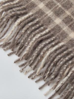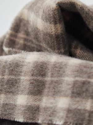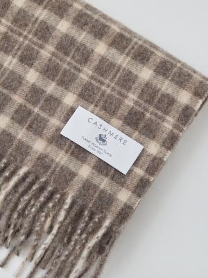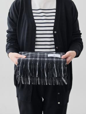 このマフラーは、冬の装いをやさしく引き立ててくれる“上品なチェック柄”仕立て。