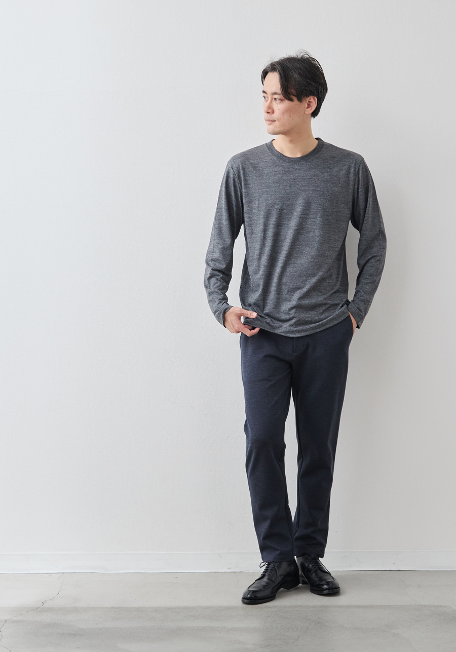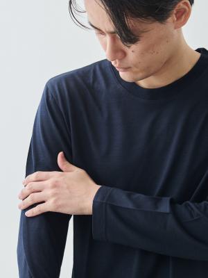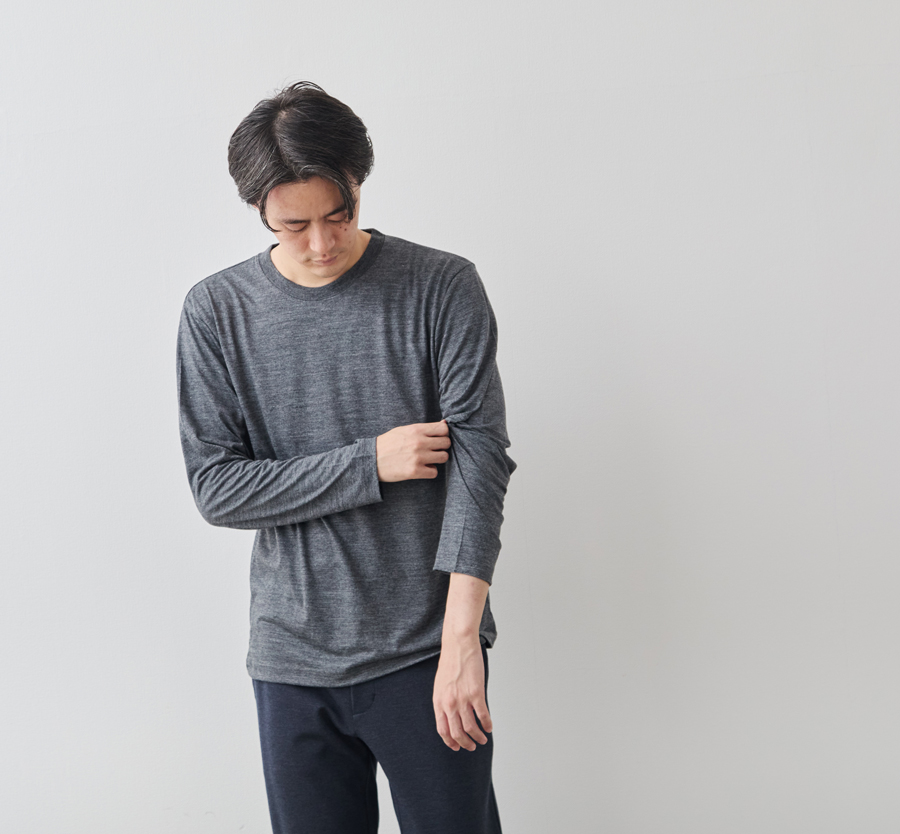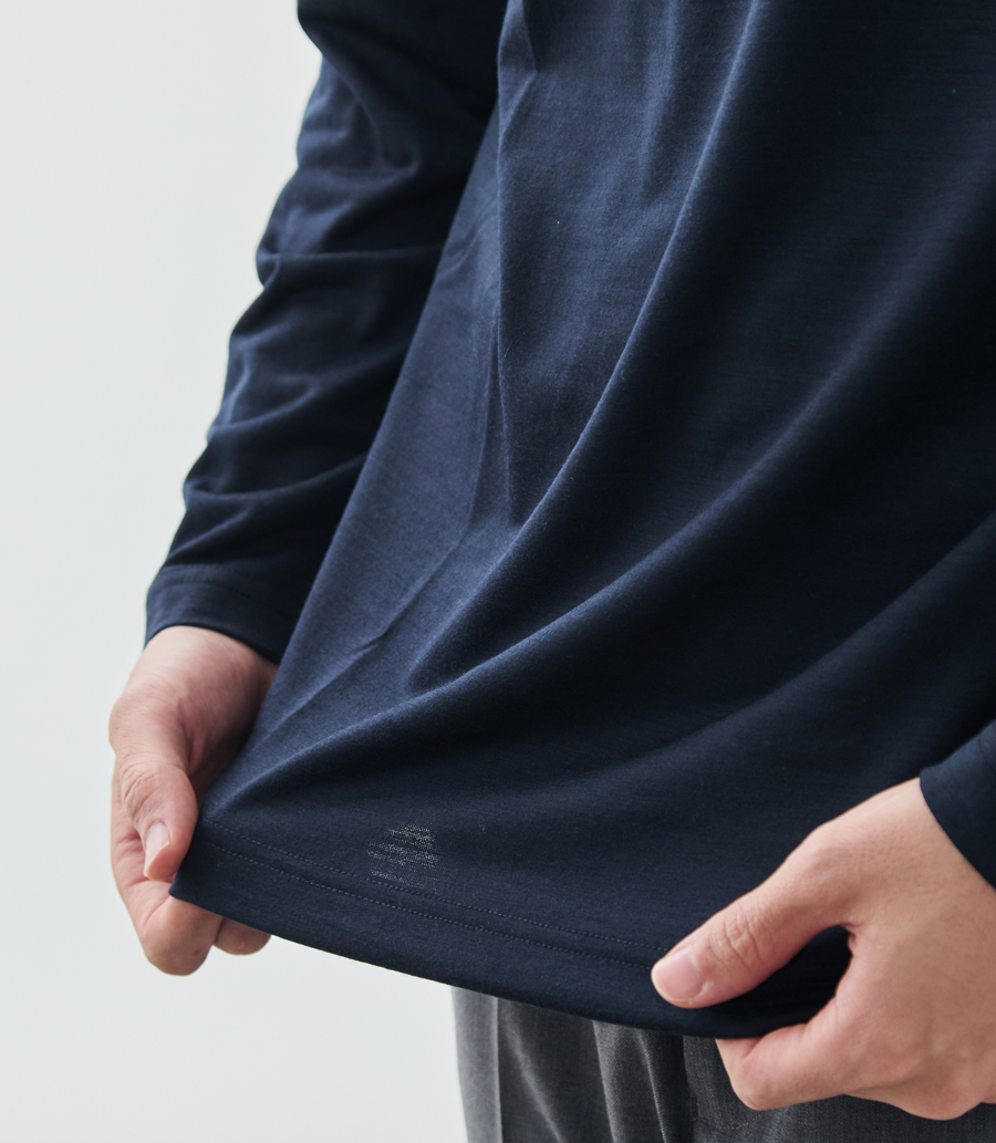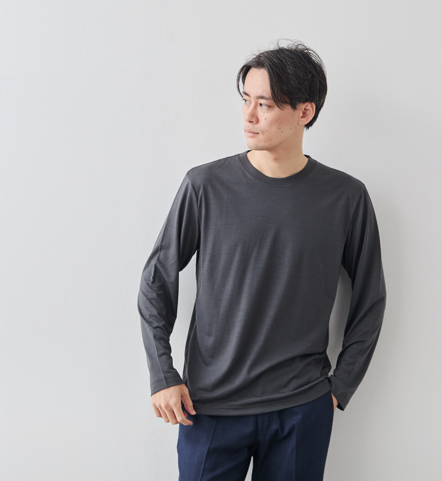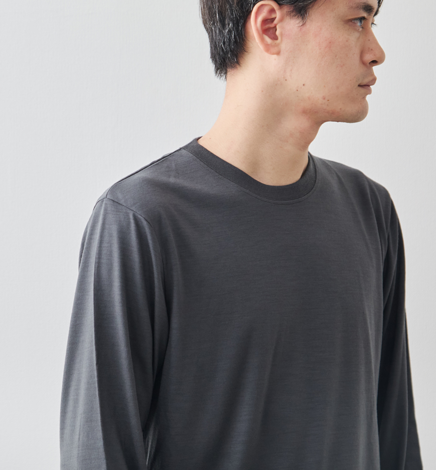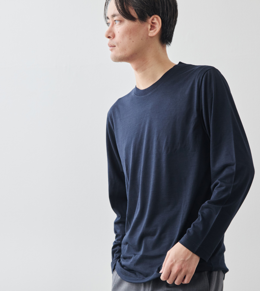 宇宙船の船内服にも採用されるほどの“超高機能ウール糸”「NIKKE AXIO®(アクシオ)」を使用した、高級感と快適性、暖かさを両立させたTシャツ。