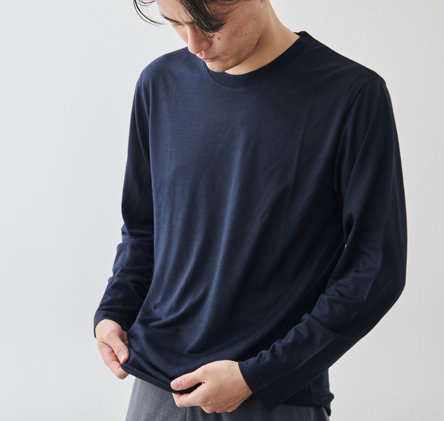秋・冬にはウールがもたらす「高い保温力」のあるインナーTシャツとして。