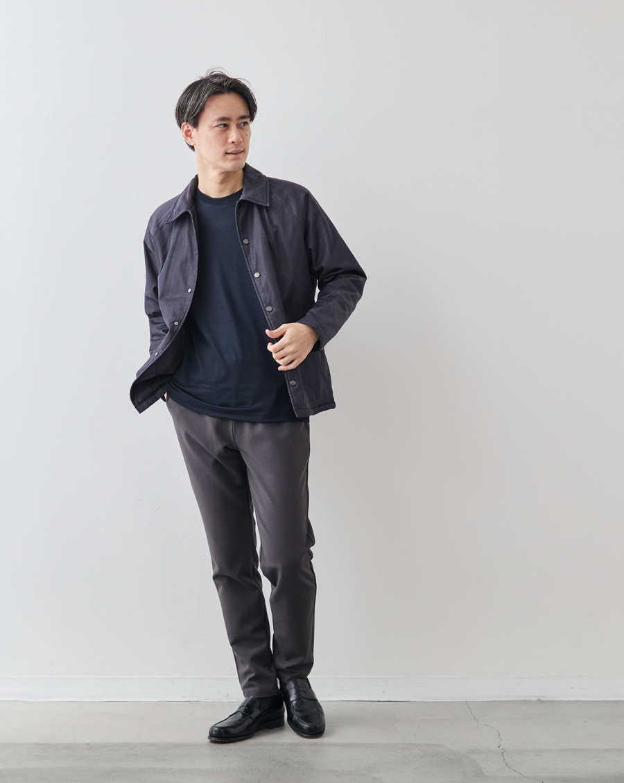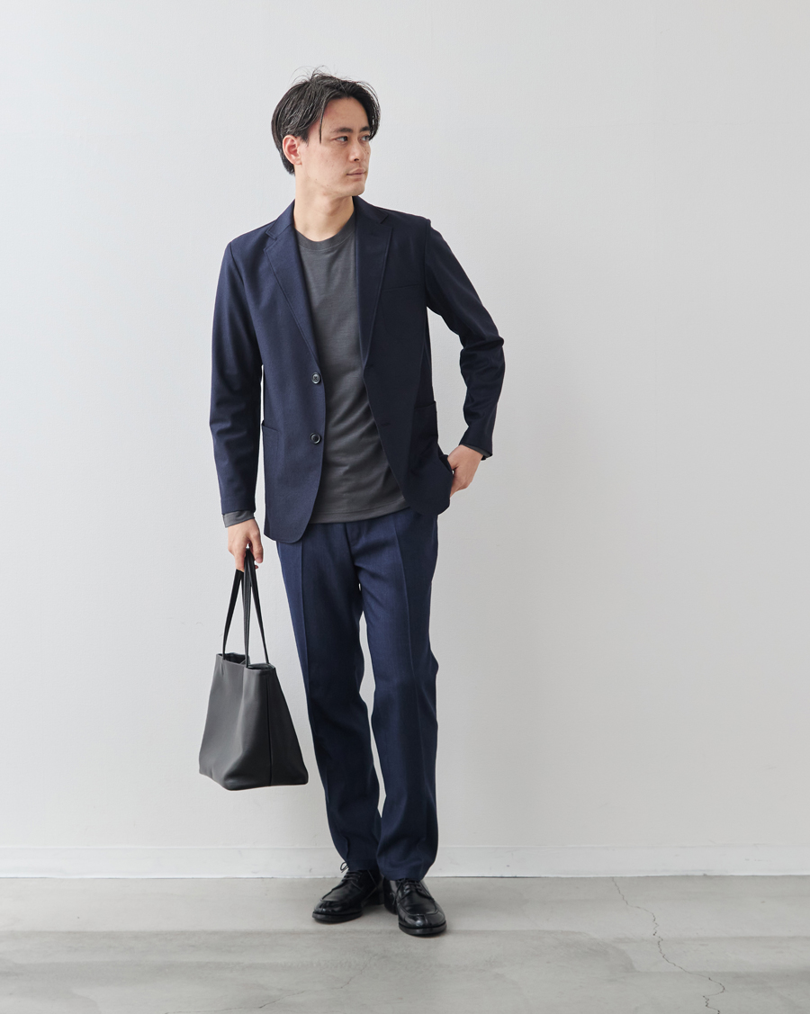 Tシャツ一枚でもだらしなく見えず、洗練された大人のカジュアルスタイルを演出します。