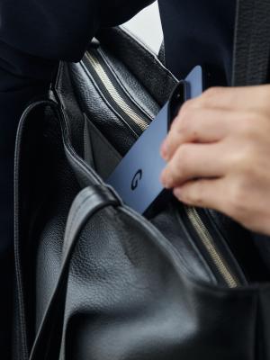 ファスナーを閉じてもスマホや財布をすぐ取り出せる隠しポケット。