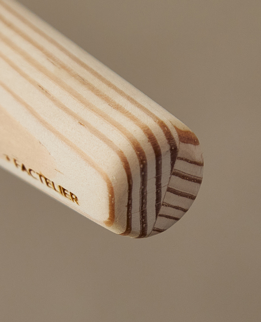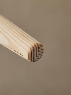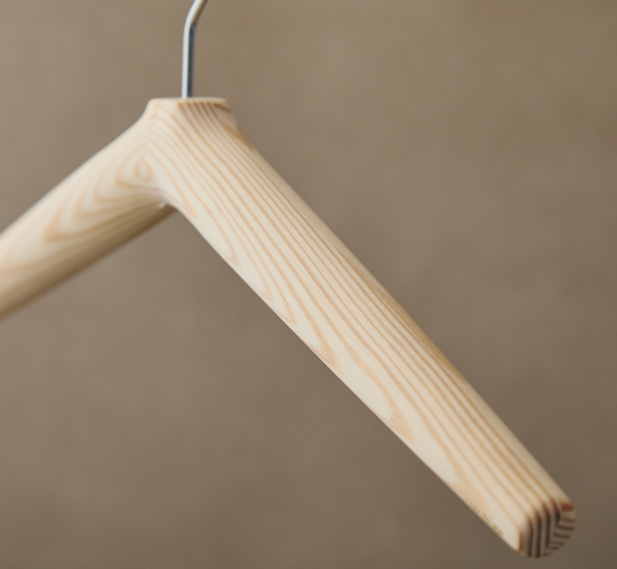 しかしながら、「カリモク家具が森に対してこれからもできることは、材を活かし、日々使うものをつくること」という想いが形となり、今回はハンガーとして活用することになりました。