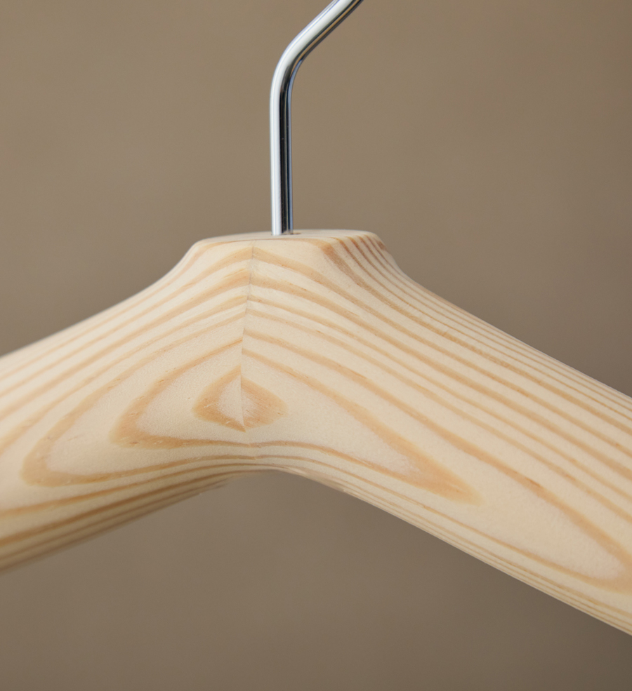 木を熟知した職人の手によって丁寧に研磨された表面は手馴染みもよく、洋服が引っかかったりすることがありません。ストレスなく、すんなりとかけ外しが可能です。