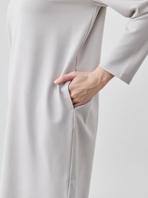 ツヤのあるカットソー生地で仕立てたこのワンピースは、