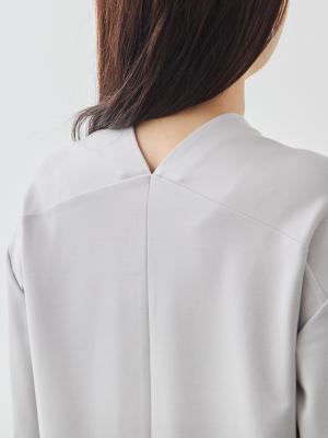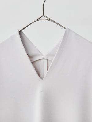 前も後ろもVネックにすることで、首元とデコルテ、そして後ろ姿まで抜け感があり、すっきりとした印象に。