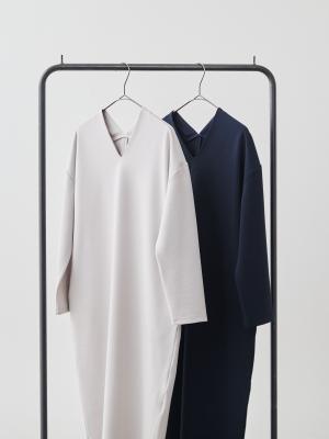 このワンピースに使用しているのは、毛羽が少なく、ストレッチ性の高いポンチ素材。