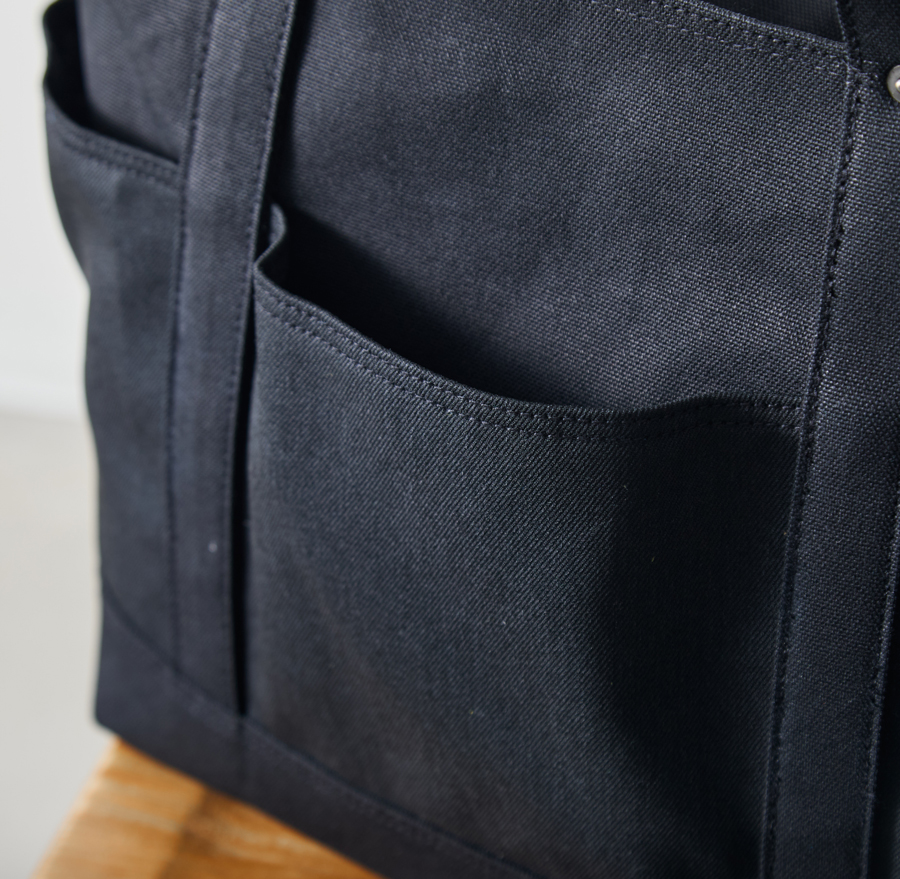 ボディに採用したのは、定番の6ポケット2way帆布トートに使用している帆布と同素材。(定番は、ネイビーとオフホワイトのみ)