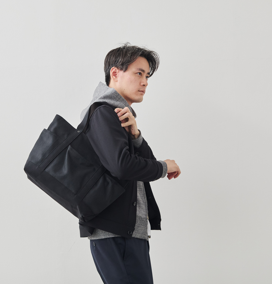 相撲のまわしや自衛隊の装備、船具など、たしかな強度が求められる場面で多く使われている「帆布(はんぷ)」でお作りした、「多機能2wayトートバッグ」。