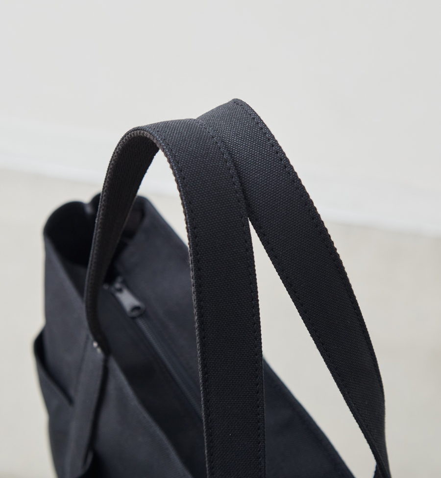 帆布の適度な摩擦によって、肩からかけたときにも持ち手がずれ落ちにくく、手で握って持った場合でも、手に馴染む感覚。