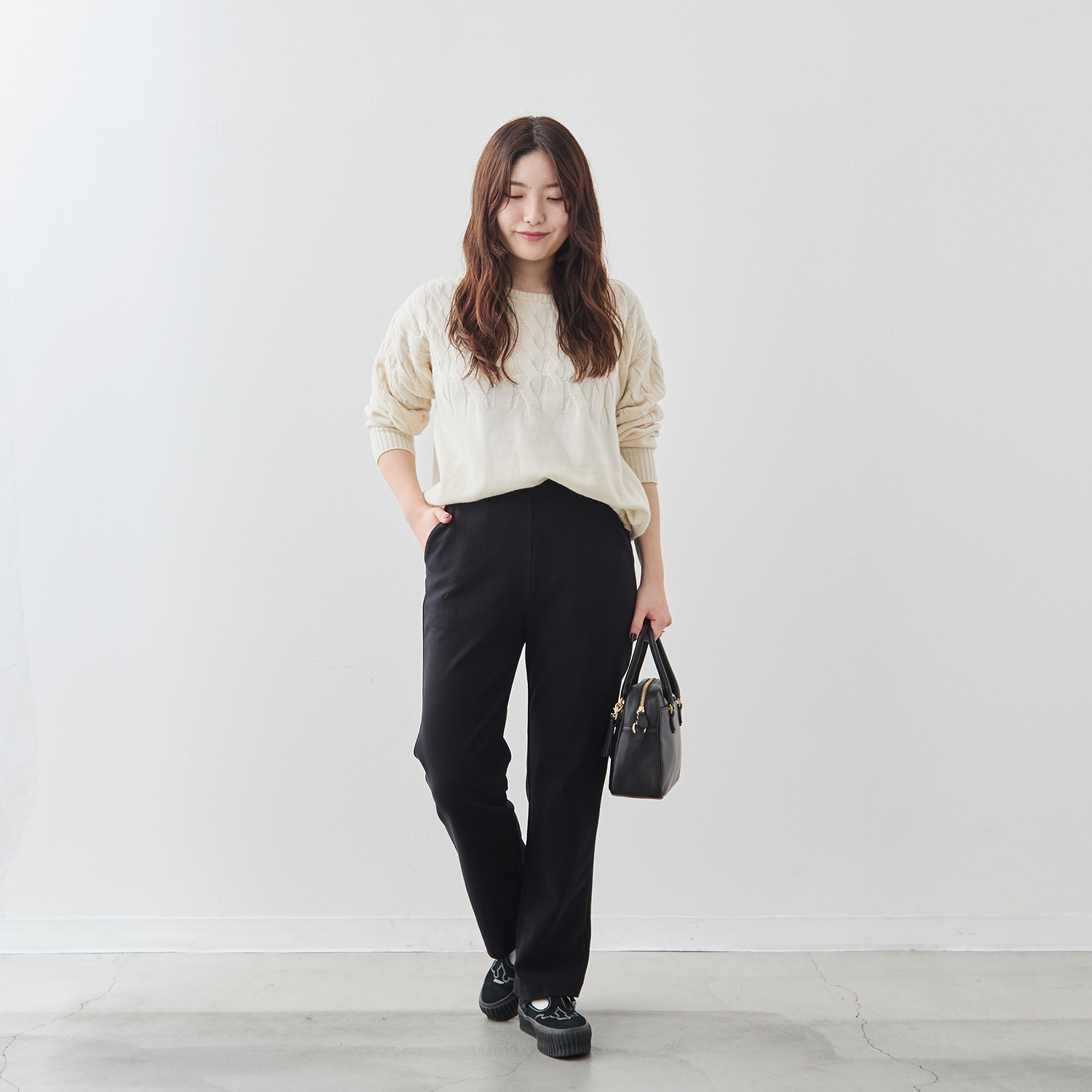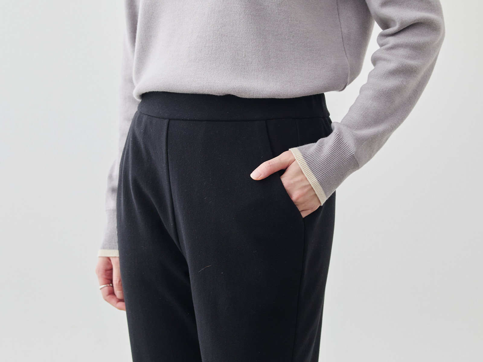らくちんなのに部屋着っぽく見えず、近所でも旅行先でも「ちゃんとして見える」優秀パンツです。
