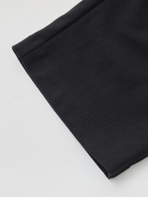 360°どの方向にもストレッチが効く生地は膝を曲げてもつっぱらず、どんな体勢をとってもらくちんです。