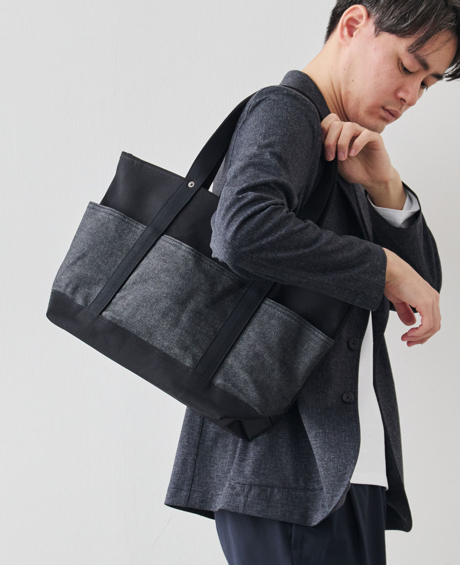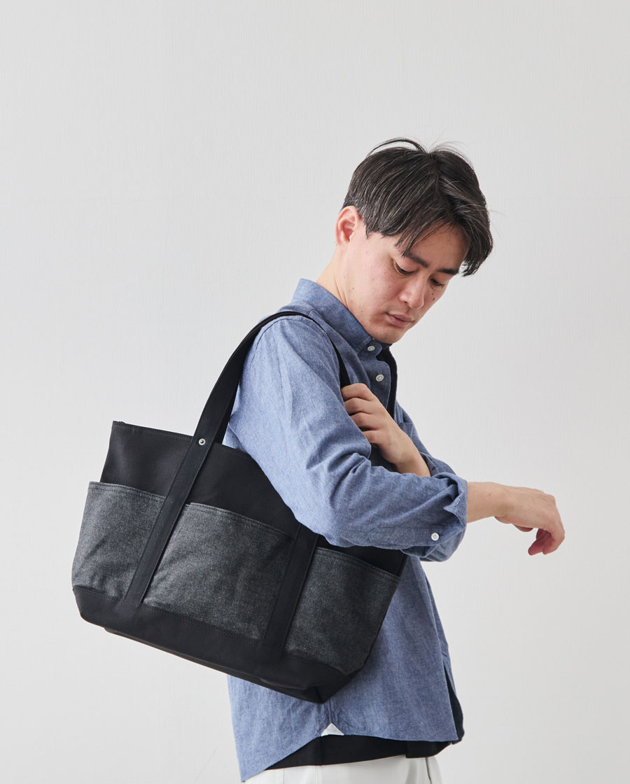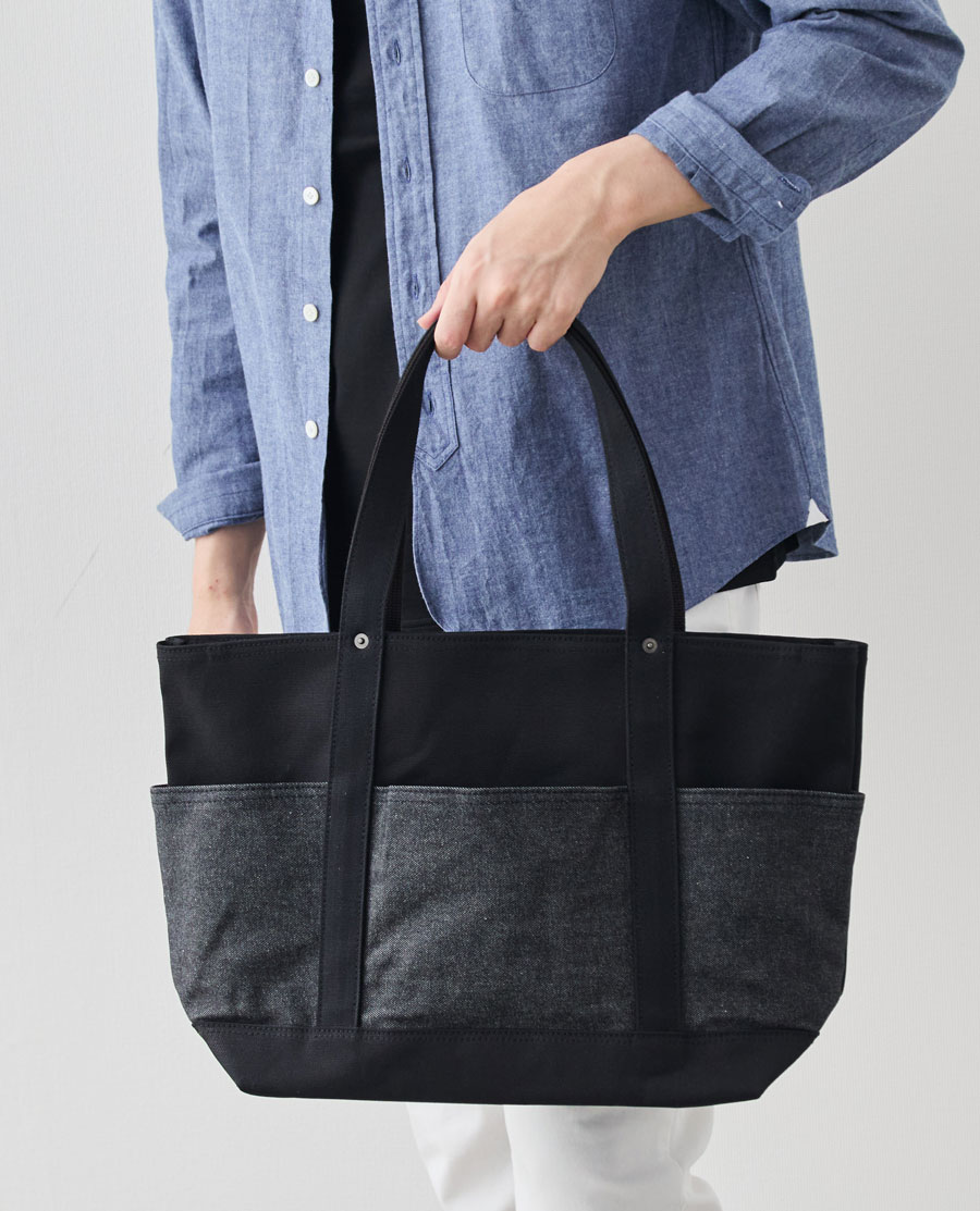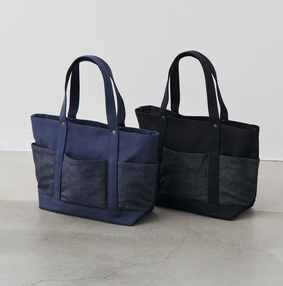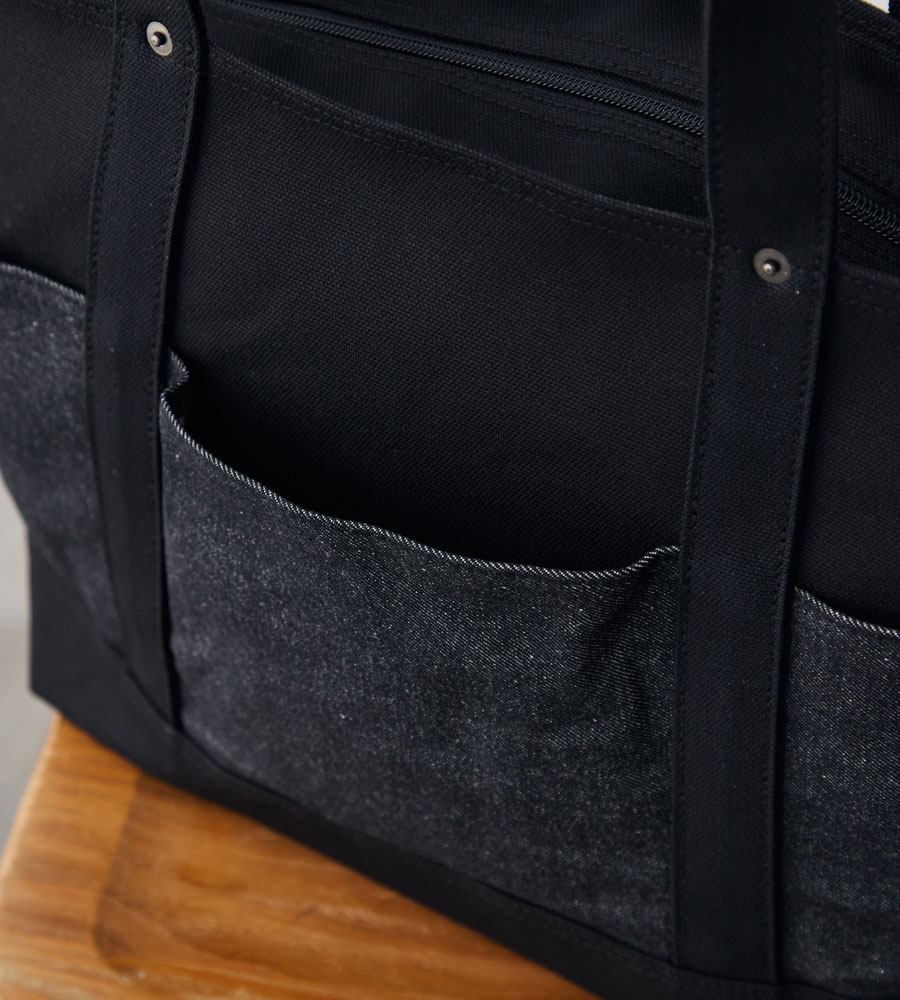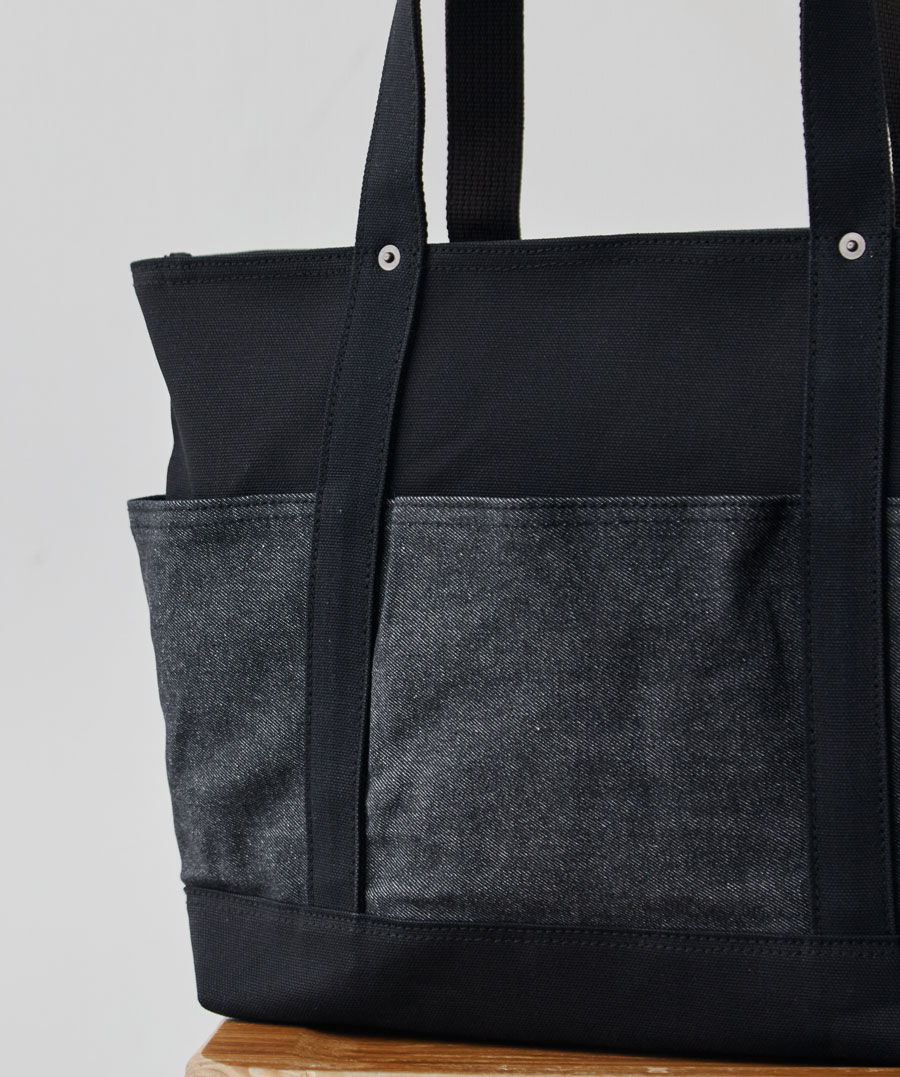 ※2025年10月に発売した「13周年記念“RE:DENIM×帆布”6ポケット2wayトート/ブラック」とは、外ポケット部分のデニム素材が異なります。