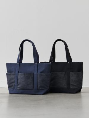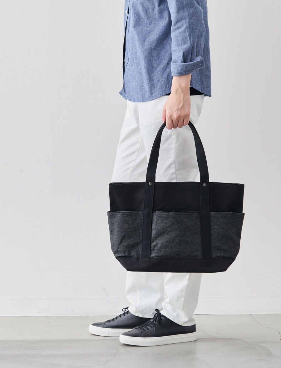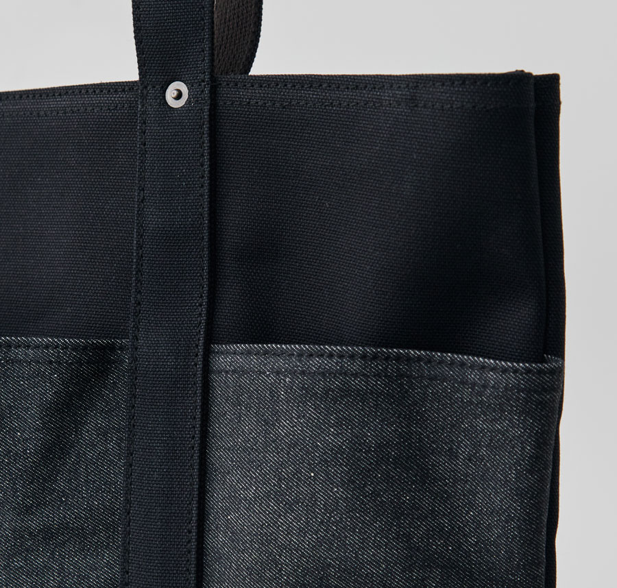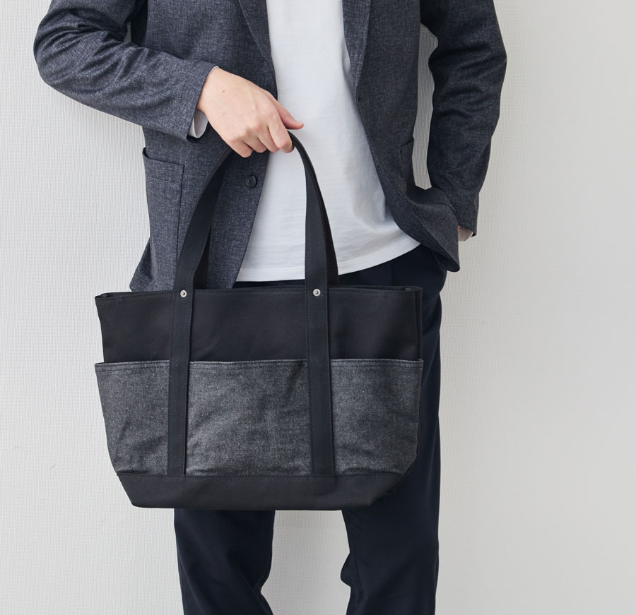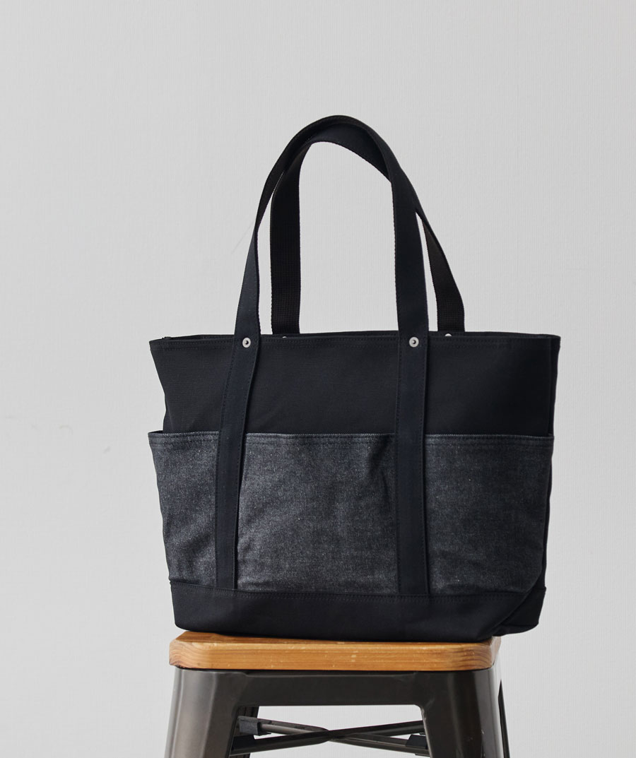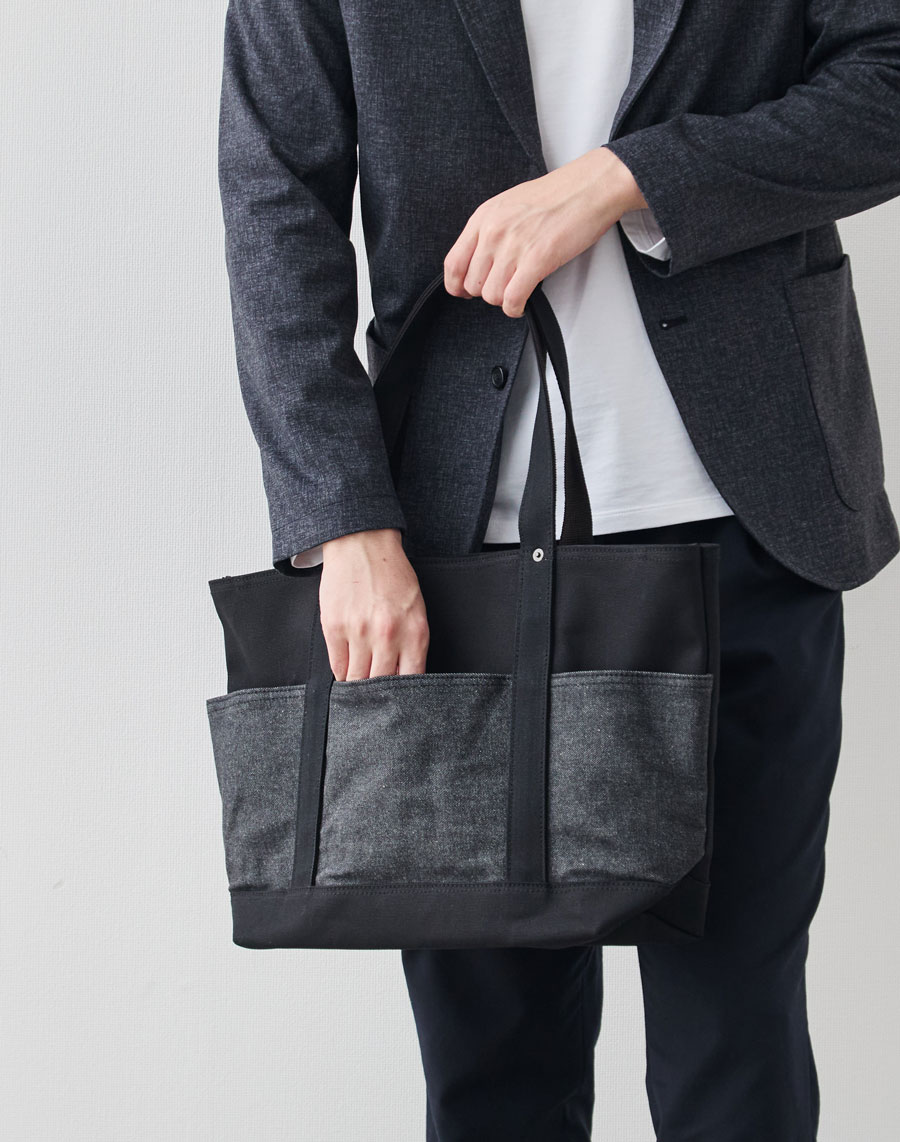 ※2025年10月に発売した「13周年記念“RE:DENIM×帆布”6ポケット2wayトート/ブラック」とは、外ポケット部分のデニム素材が異なります。