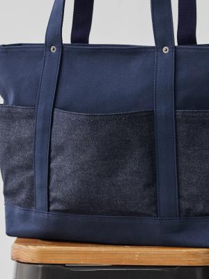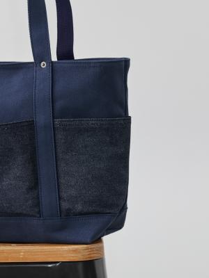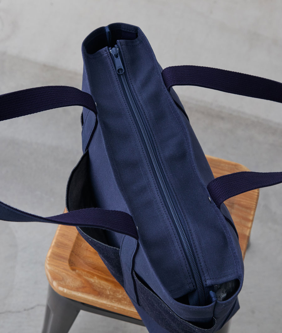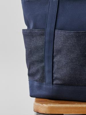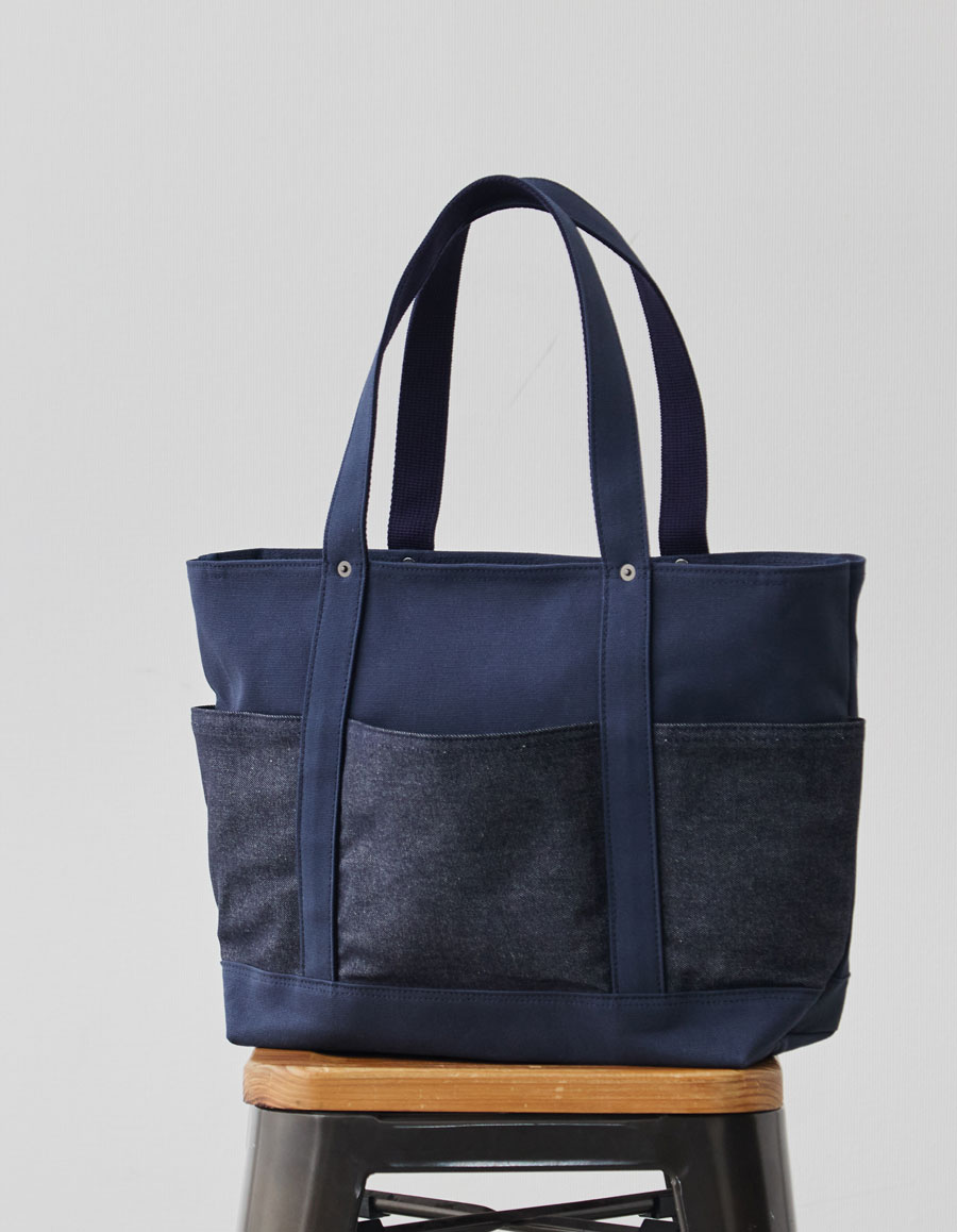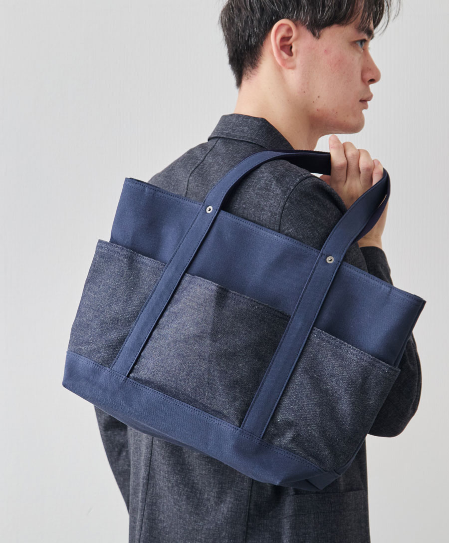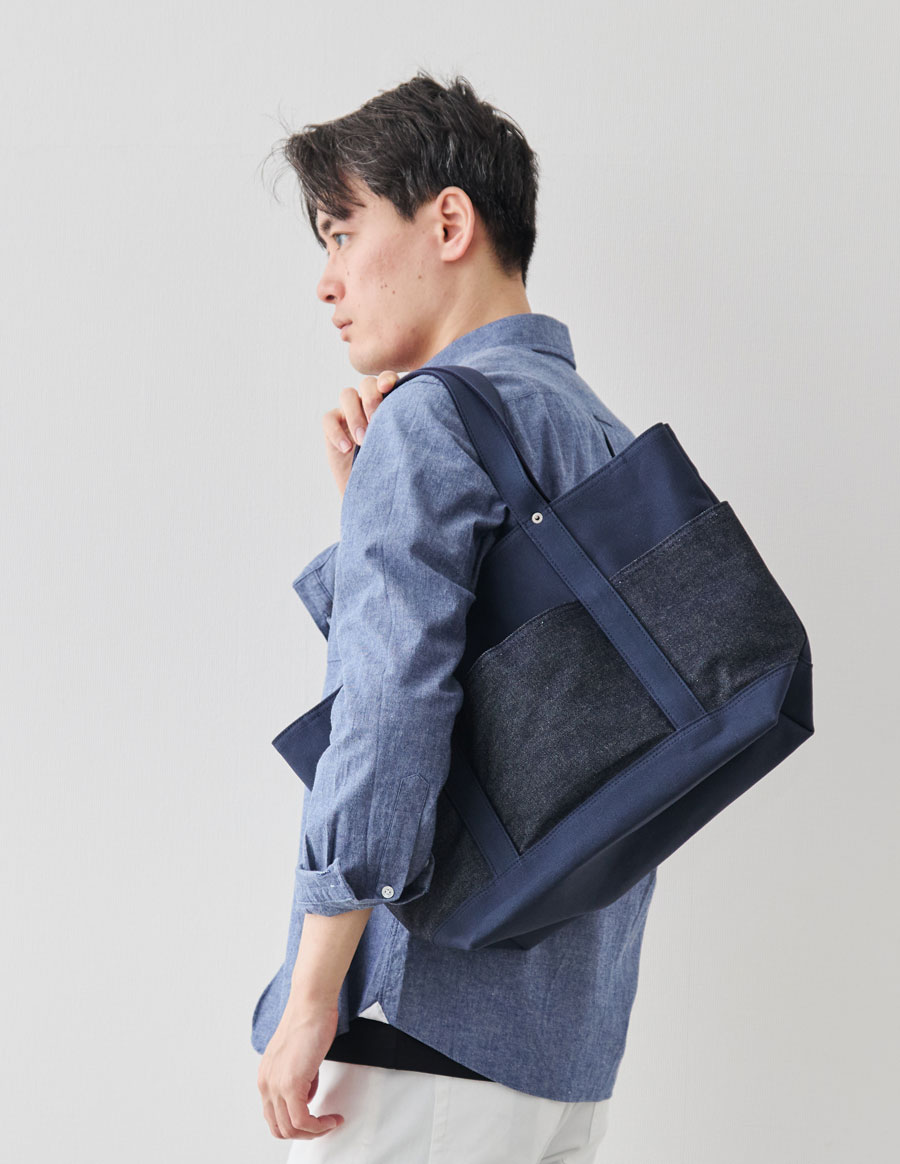 帆布とデニムのコントラストを楽しめるデザインです。