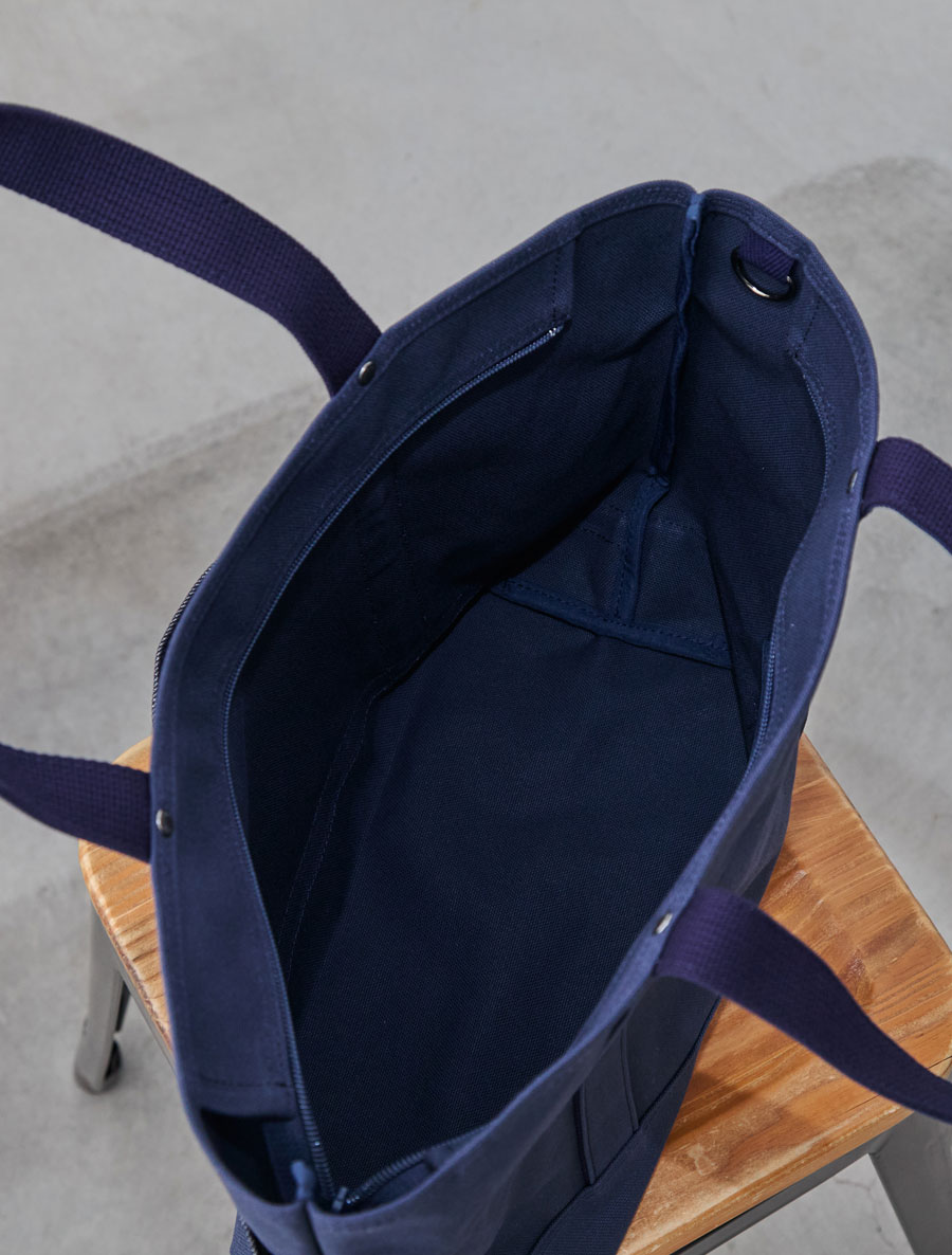 相撲のまわしや自衛隊の装備、船具など、たしかな強度が求められる場面で多く使われている「帆布(はんぷ)」でお作りした、「多機能2wayトートバッグ」。