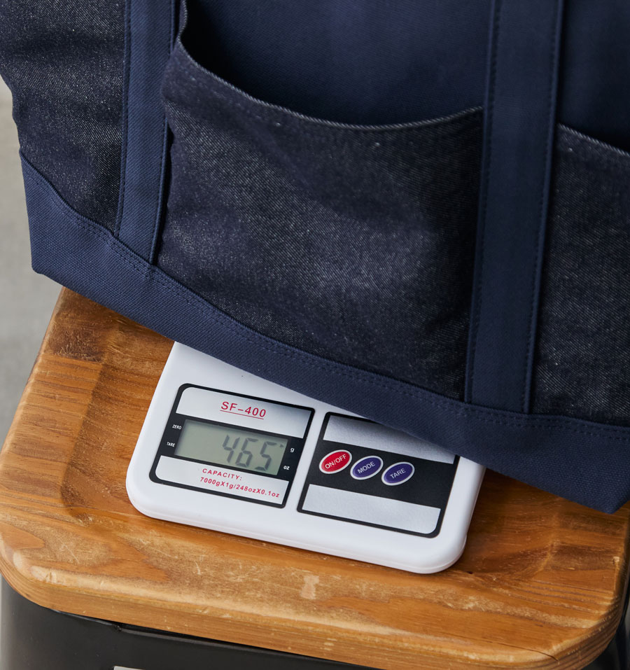 ボディは8号帆布を使用し、触れただけでしっかりしているなと感じる生地感です。