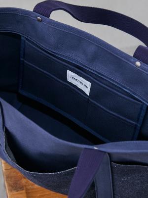 このファクトリエのバッグの中でも一二を争う人気バッグから、外ポケットにコットン100%のデニムを採用したツートンモデルが登場です。
