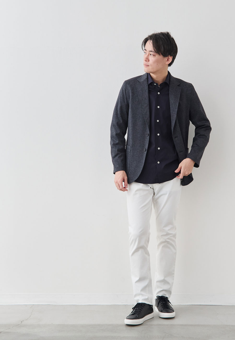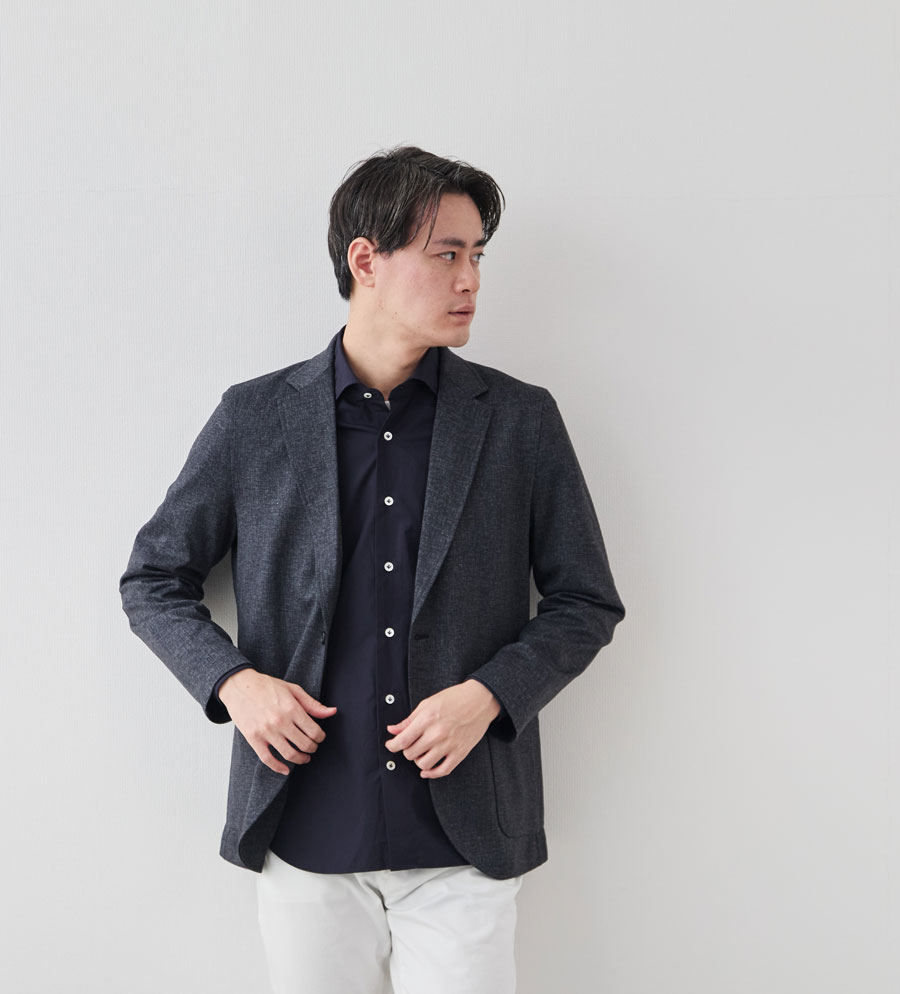 セットアップ用のパンツや、お持ちのスラックスに合わせれば完璧なビジネスカジュアルが完成します。