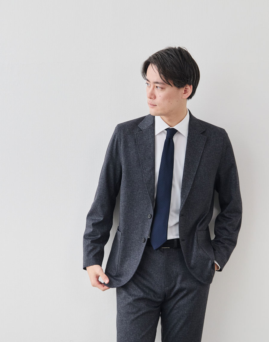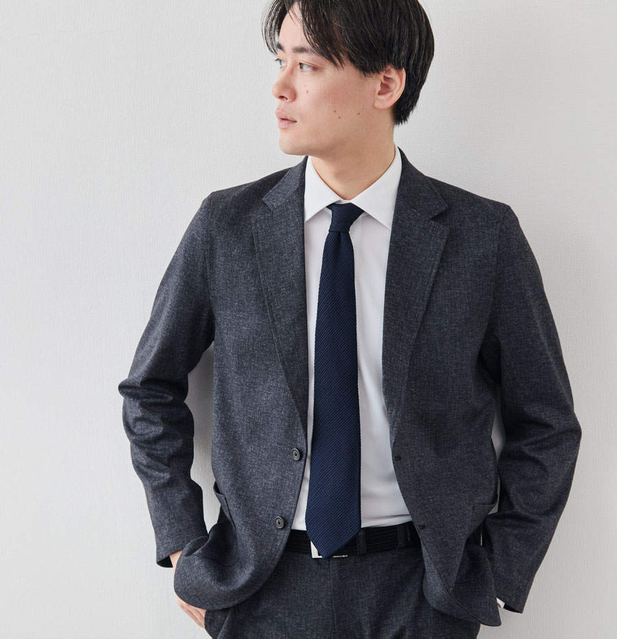 シルエットは、日本人の体型を美しく見せるスリムフィット。
