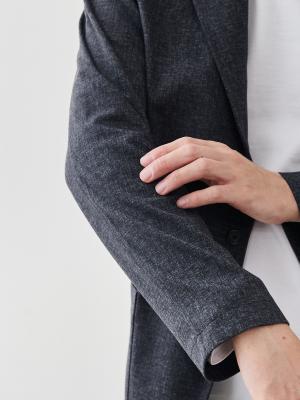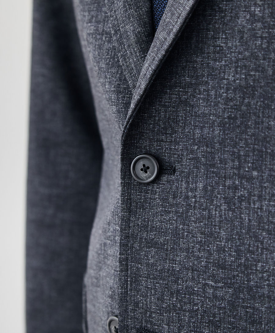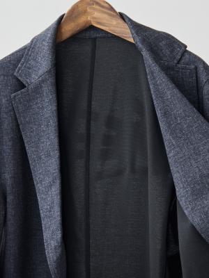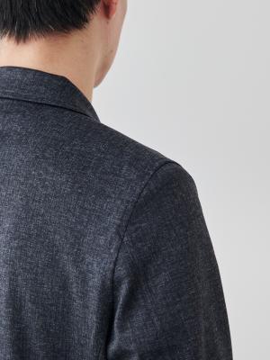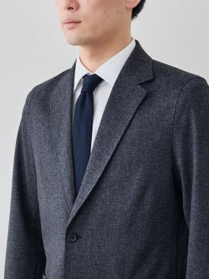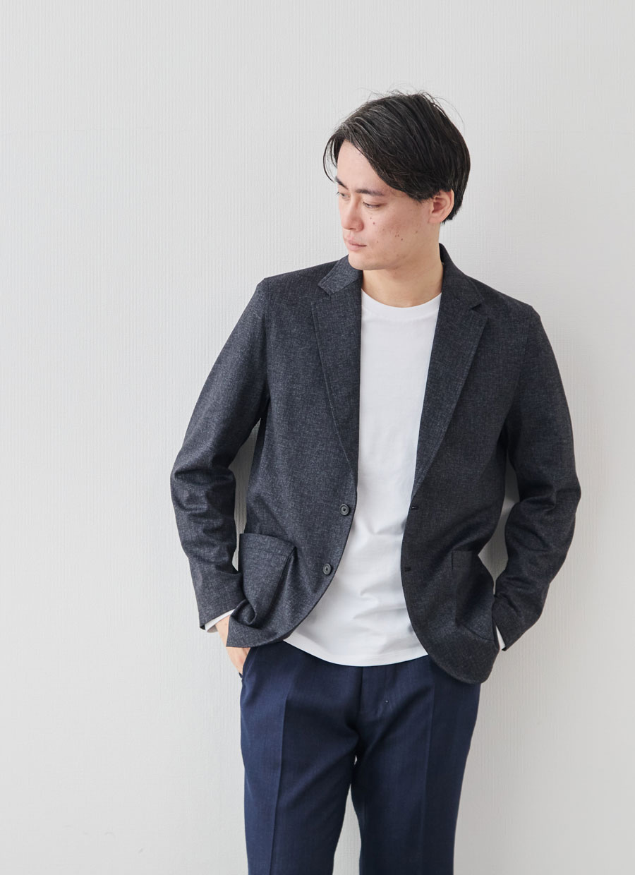 このジャケットの核となるのは、尾州の老舗、西川毛織が手掛けた「ダブルジャージー=両面編み」です。