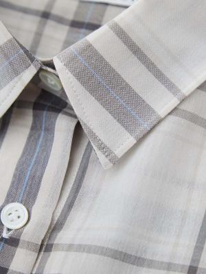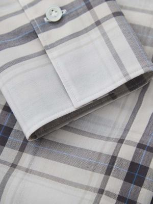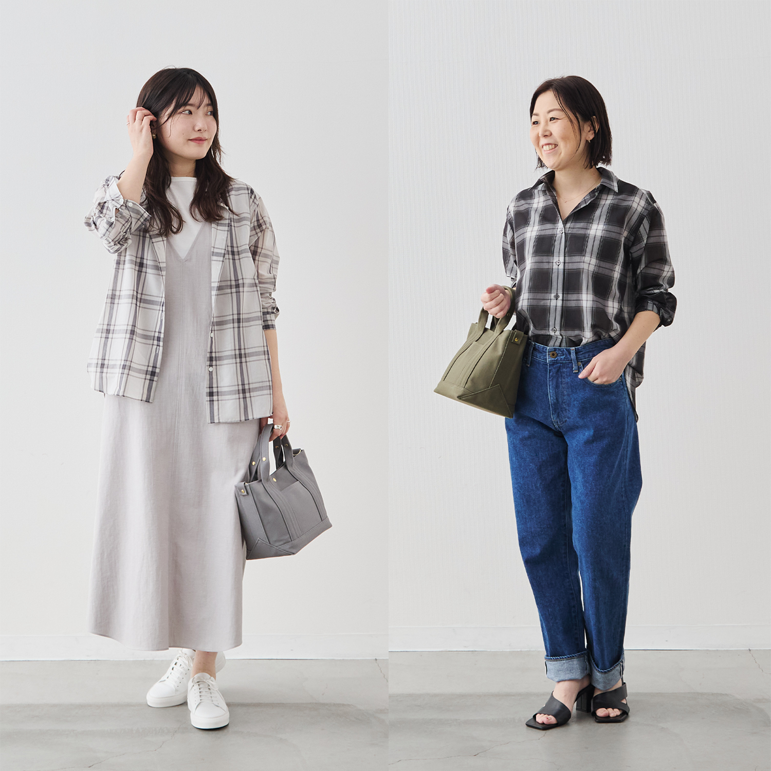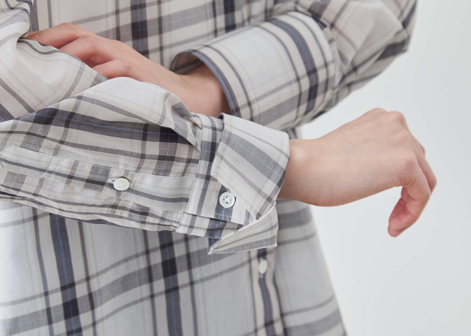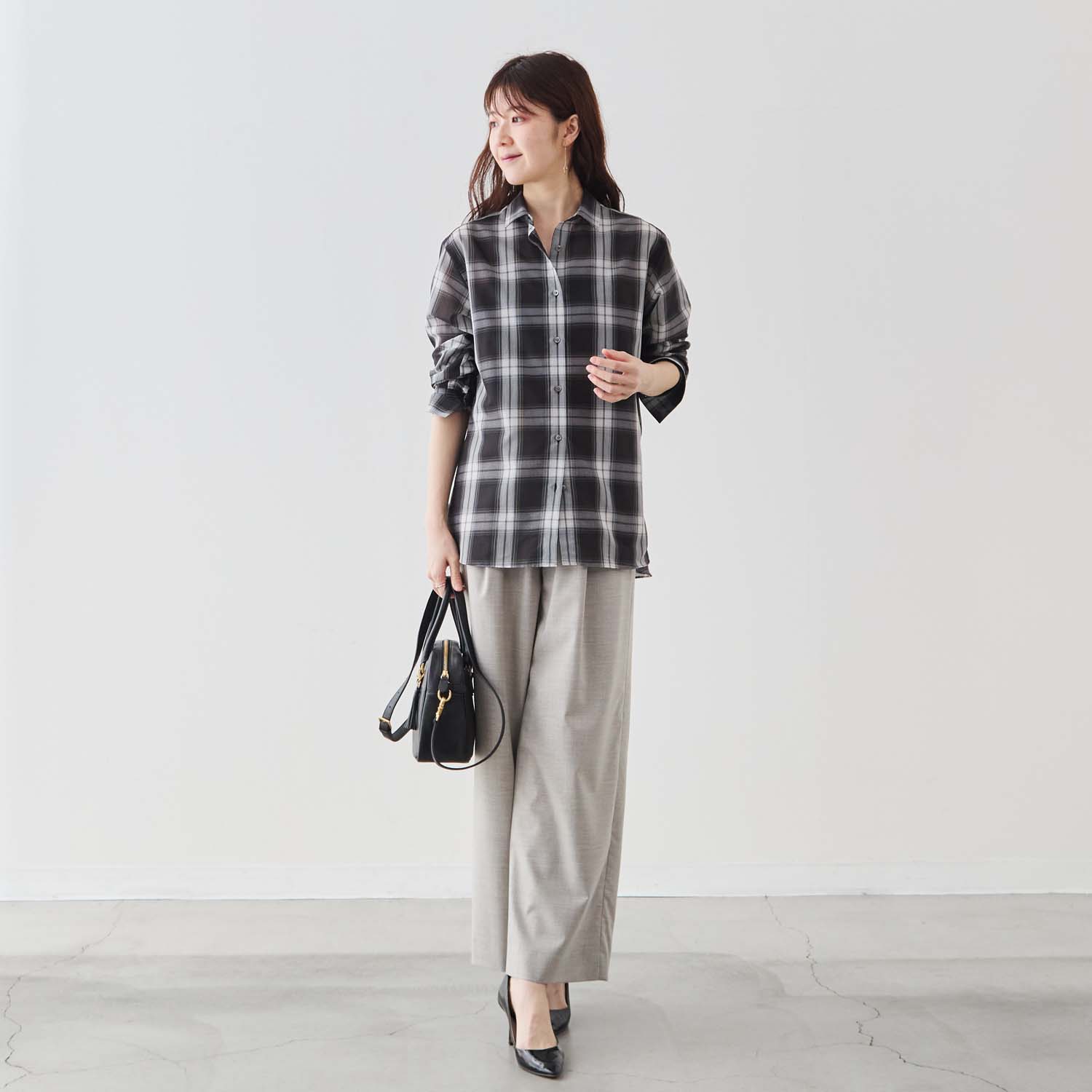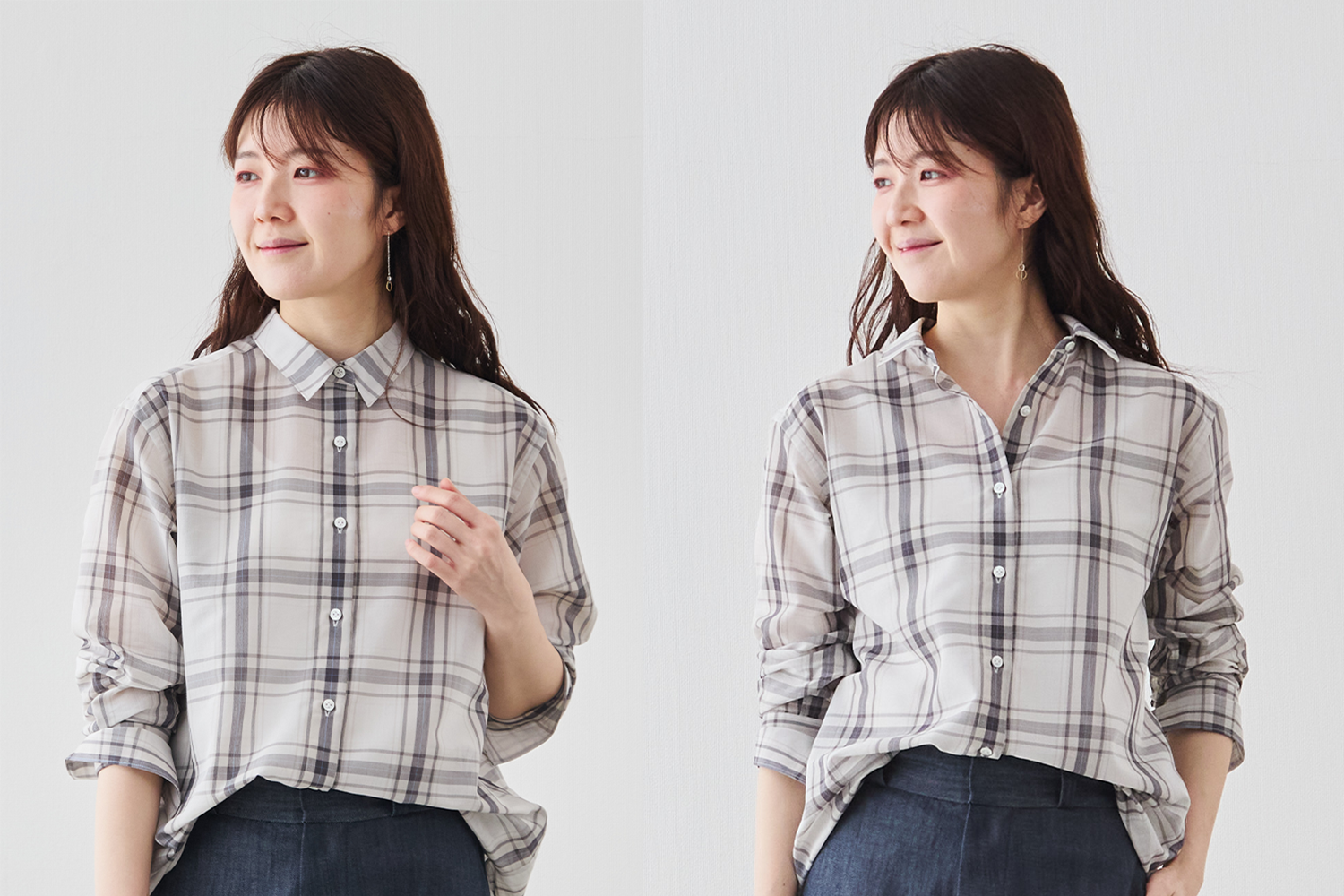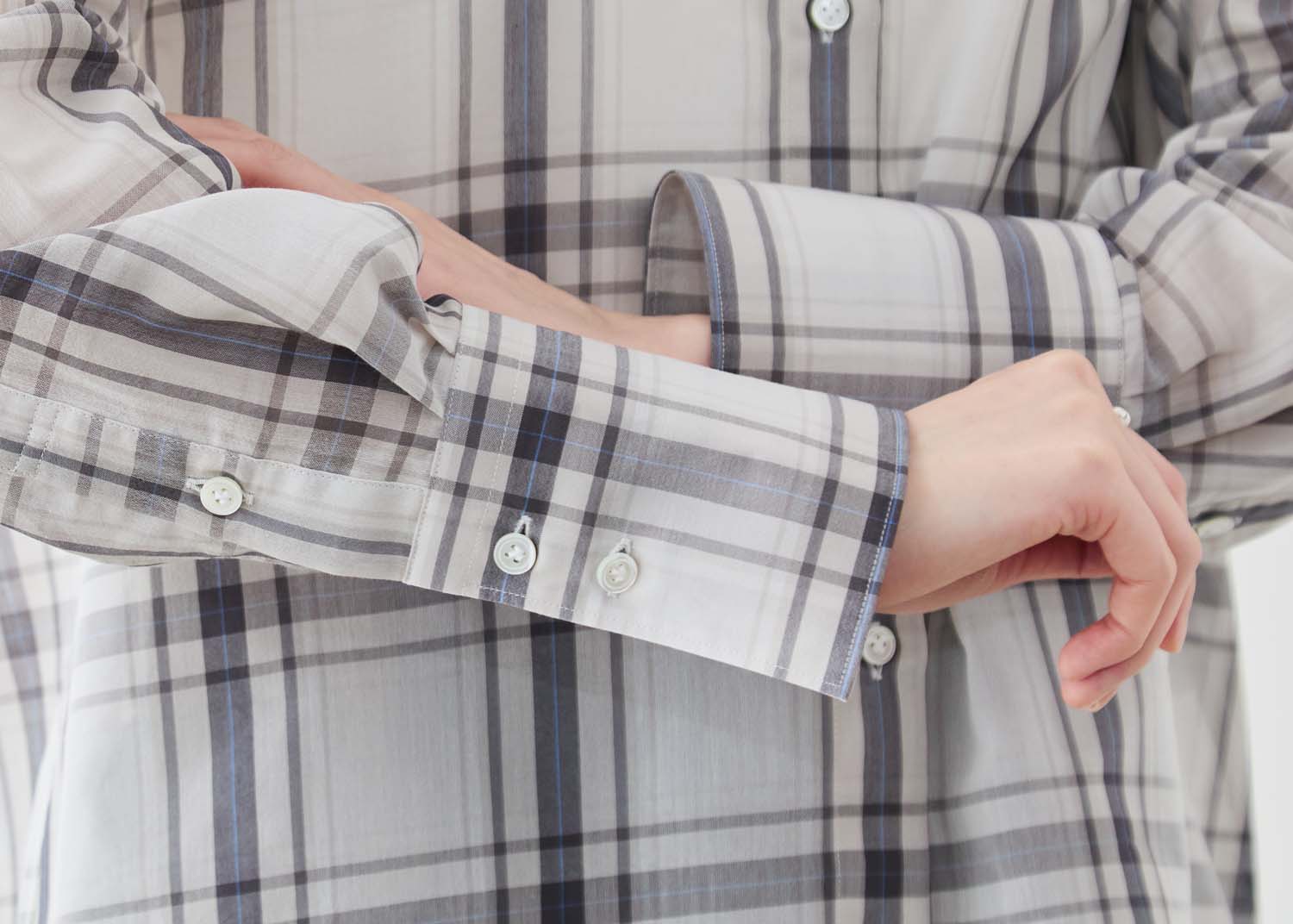 大柄チェックの存在感と、控えめなシアーの上品さ。