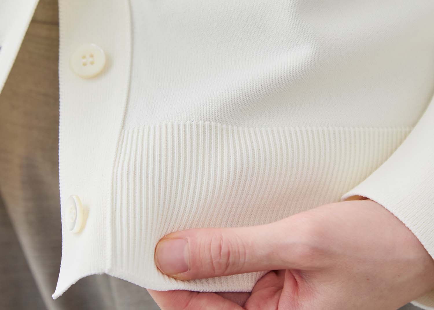 このリブがアクセントになって、全体をきゅっと引き締めてくれることでメリハリが生まれ、“きちんと見え”を叶えてくれるんです。