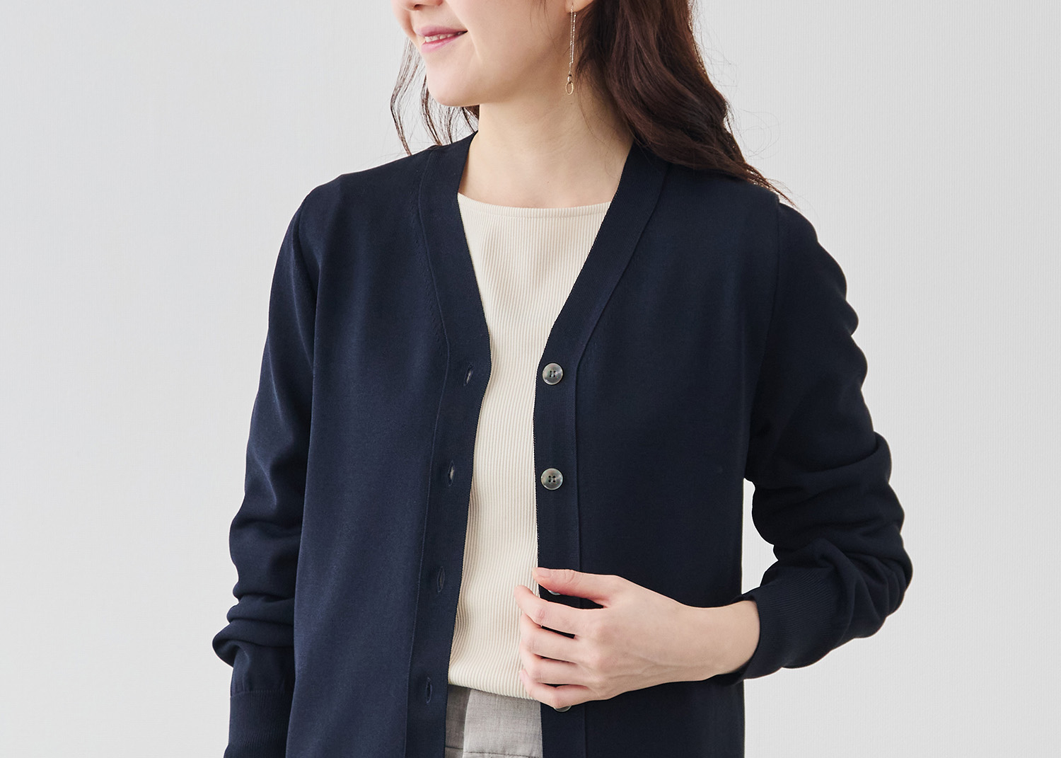 見た目の美しさと扱いやすさ、そのどちらも叶えたカーディガンですよ。