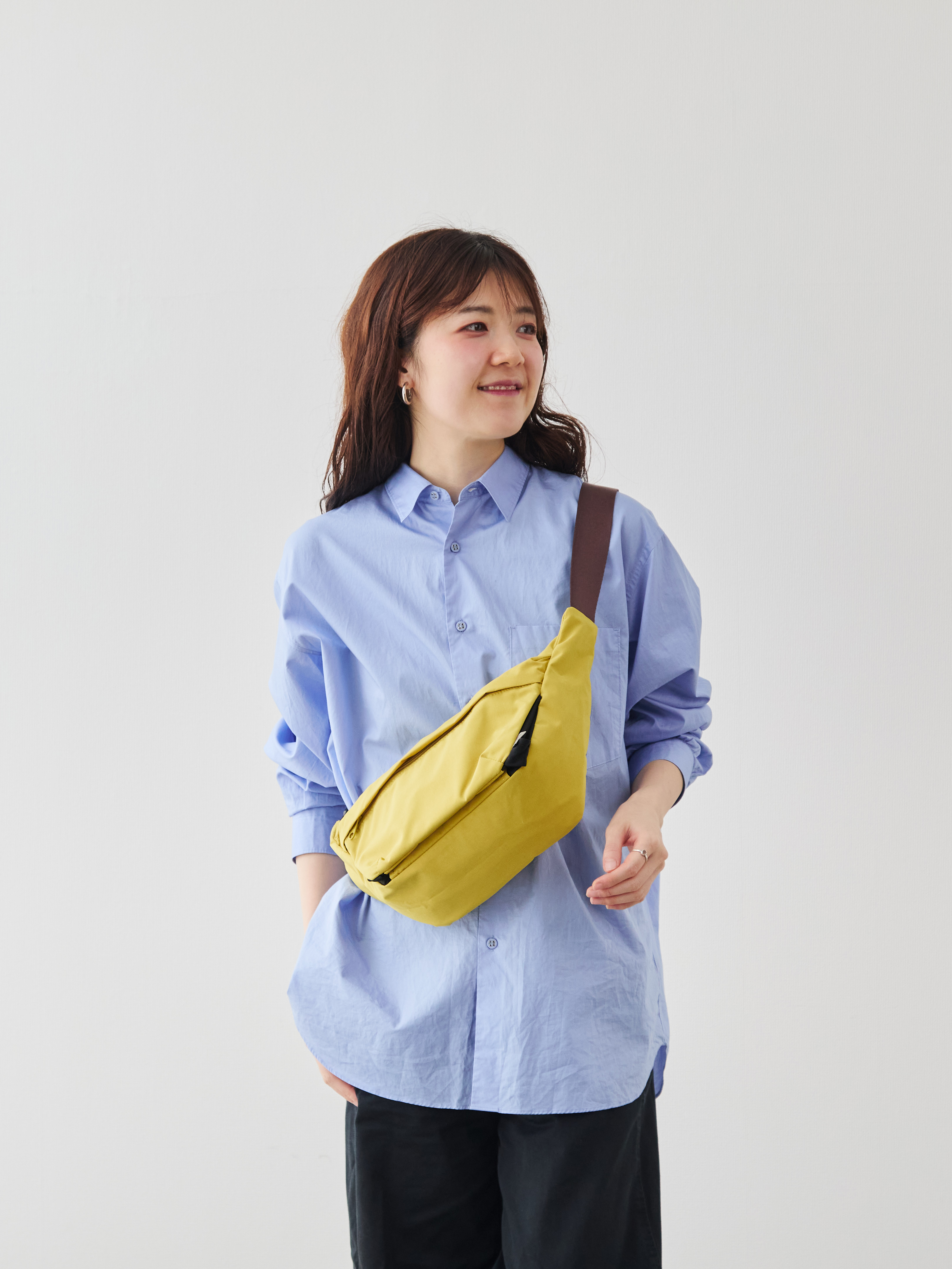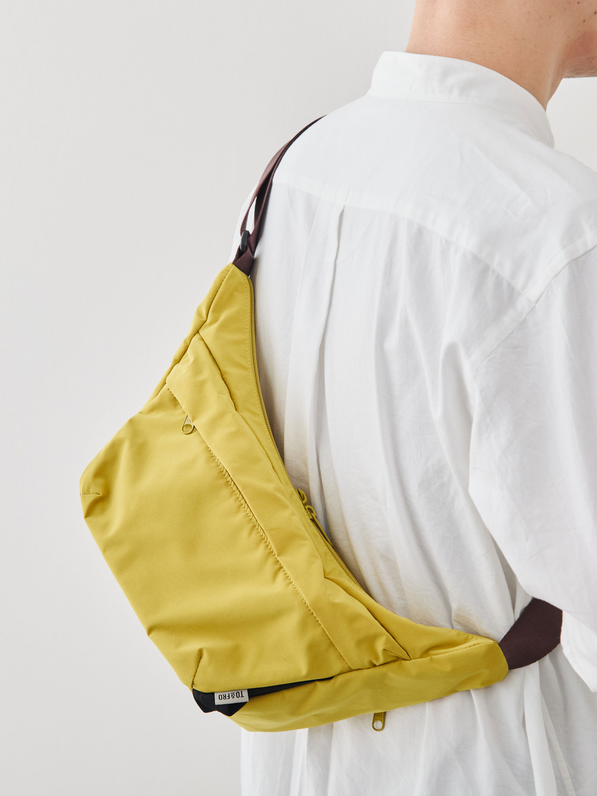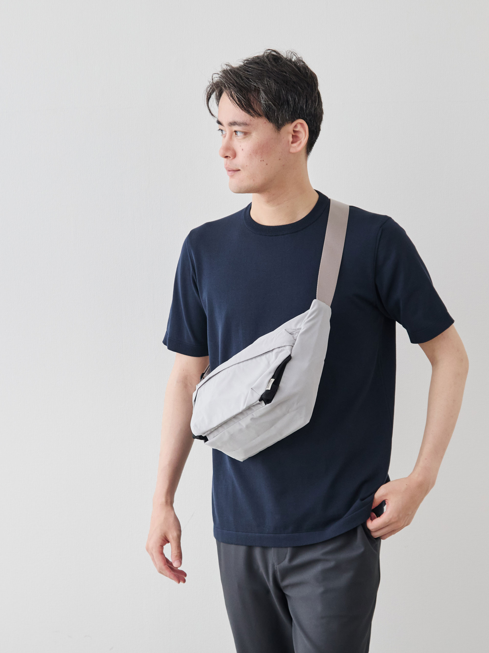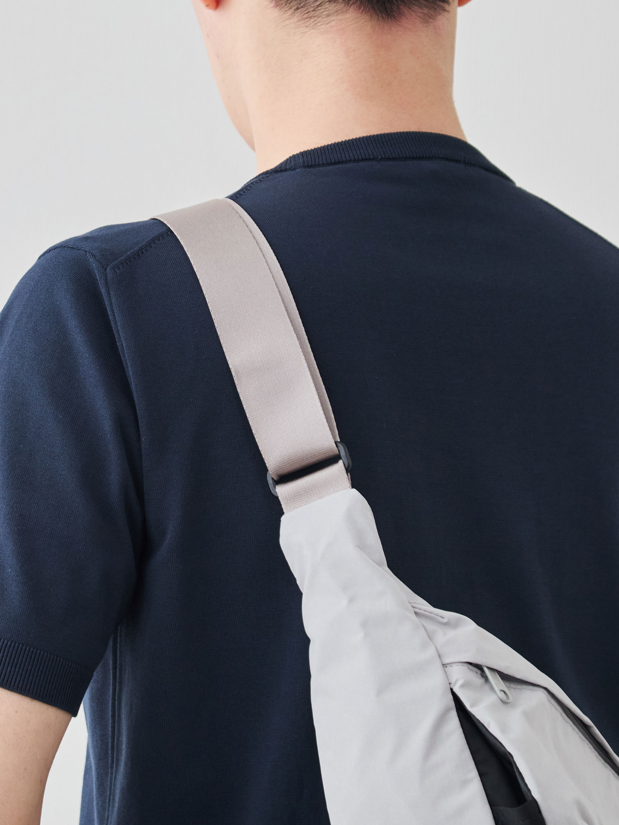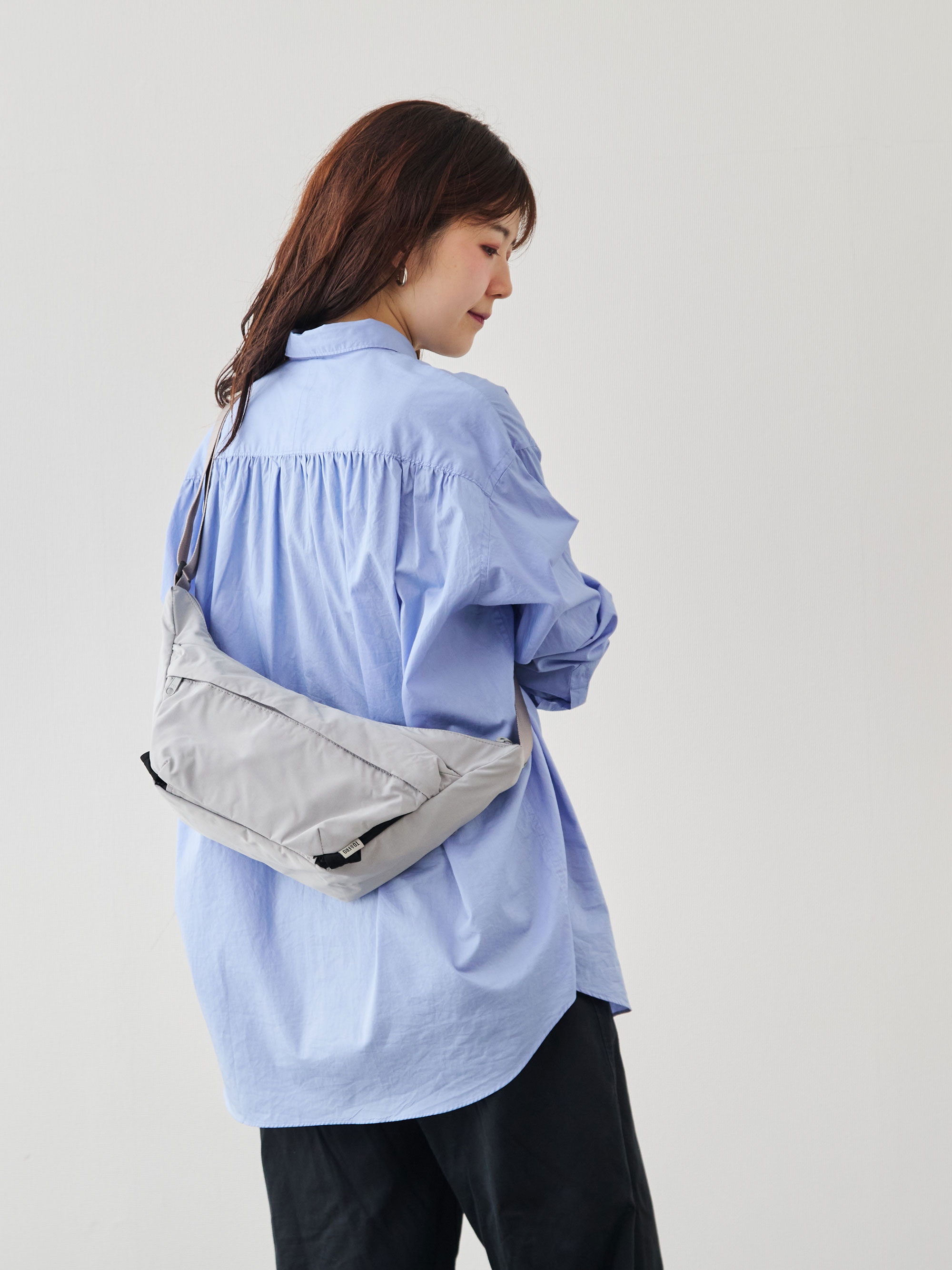 ワンショルダーでありながら、ずれにくくストレスが少ないのは、このフォルムのこだわりがあってこそ。電車の中でも、週末の散歩でも、荷物が体の一部のように自然についてきます。