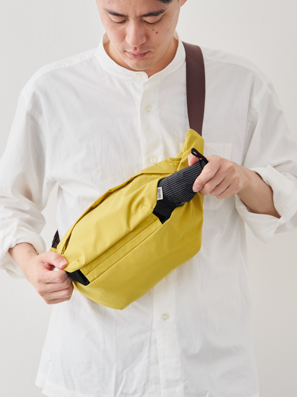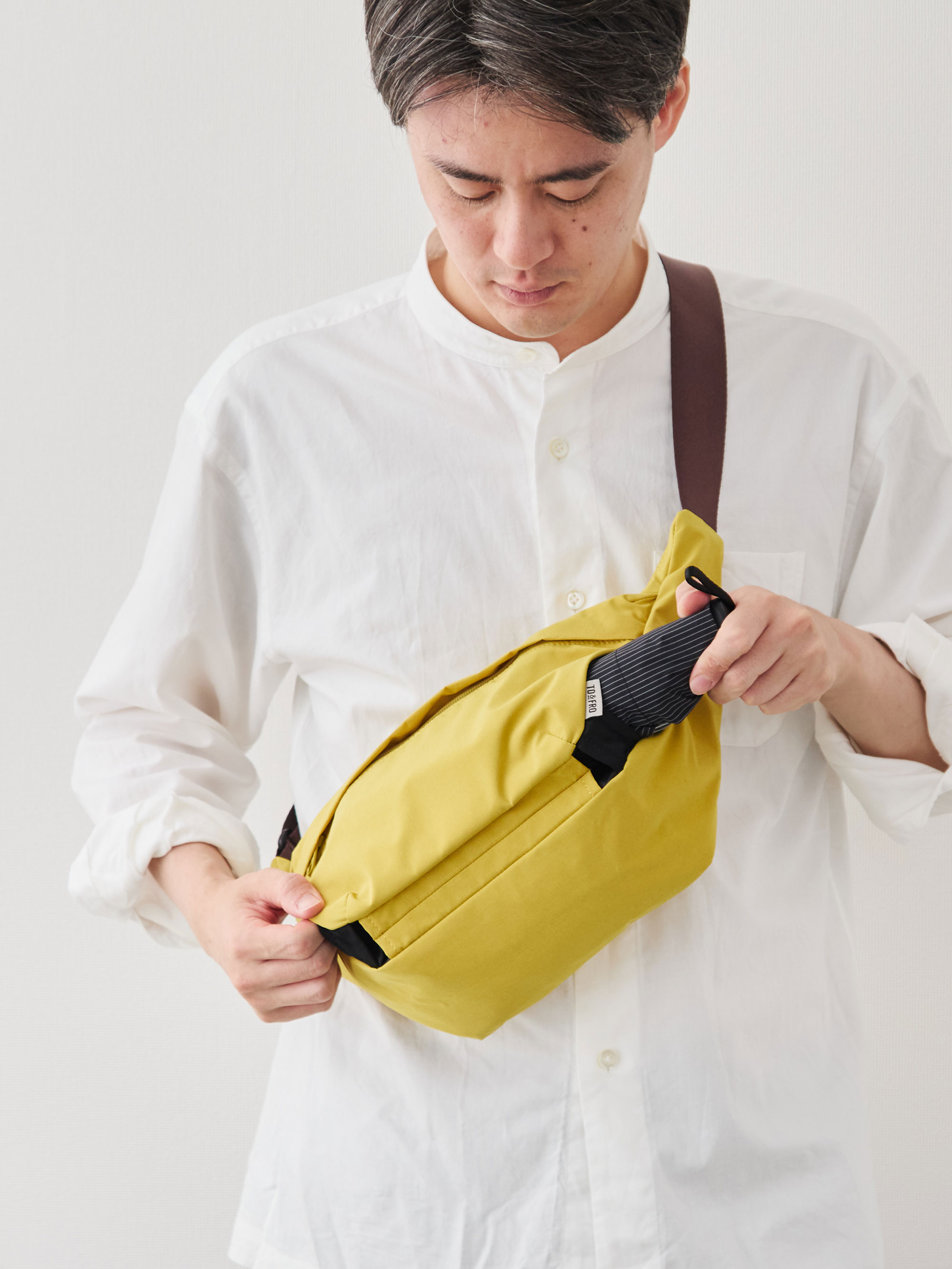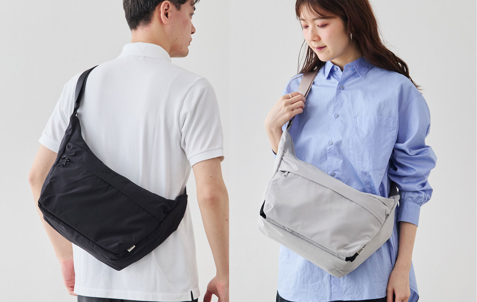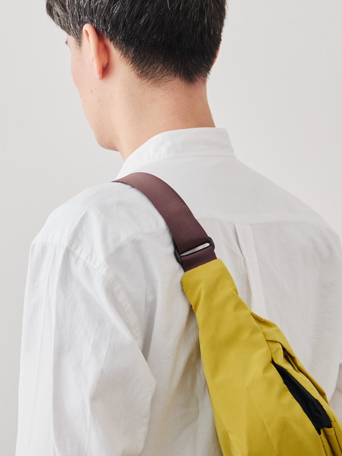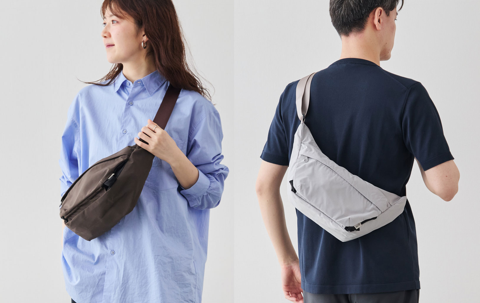 ワンショルダーでありながら、ずれにくくストレスが少ないのは、このフォルムのこだわりがあってこそ。電車の中でも、週末の散歩でも、荷物が体の一部のように自然についてきます。