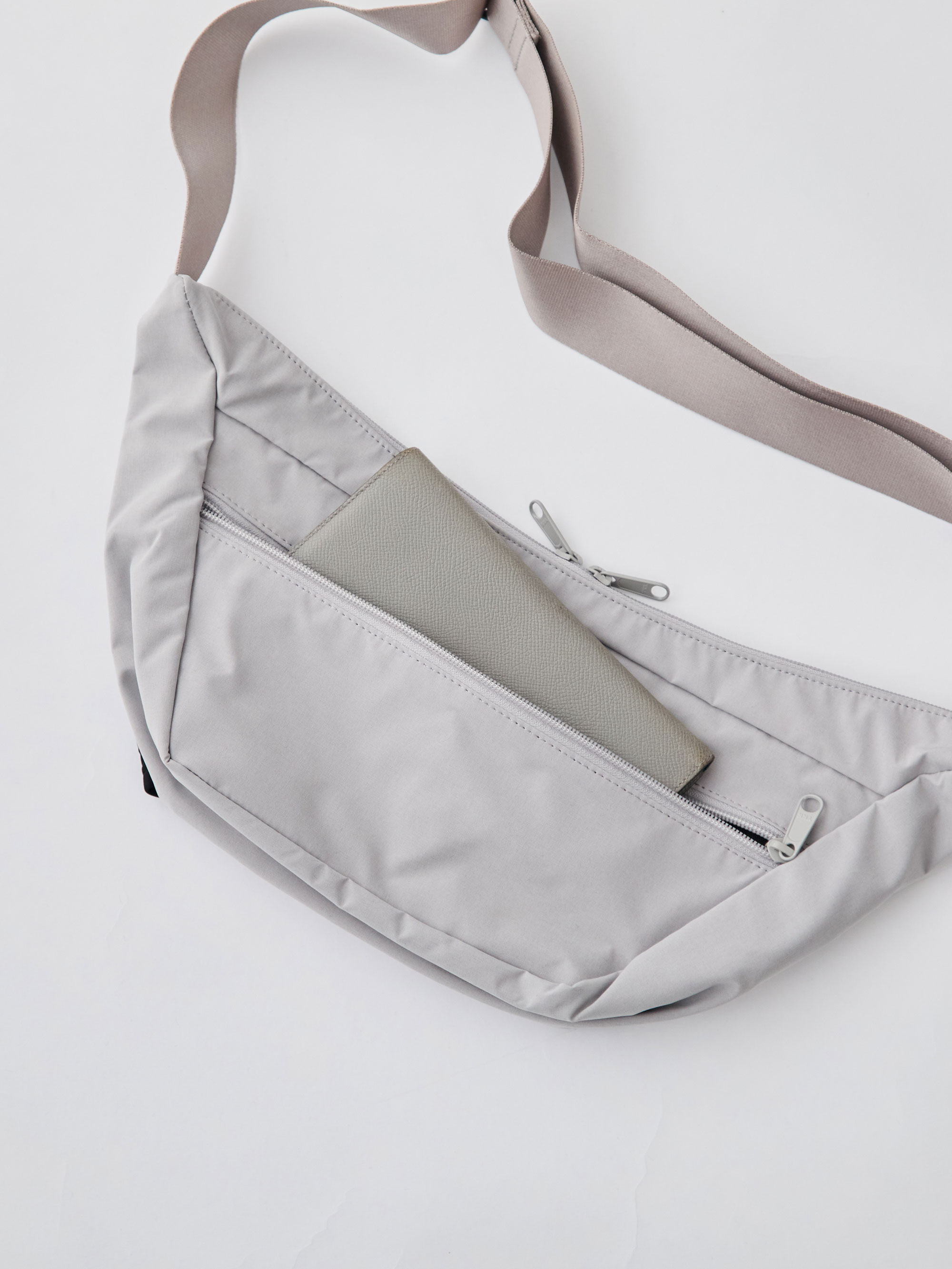 撥水・収納・フィット感を上品にまとめた三日月ショルダーは、日常のあらゆるシーンにさりげなく寄り添う、そんなバッグです。