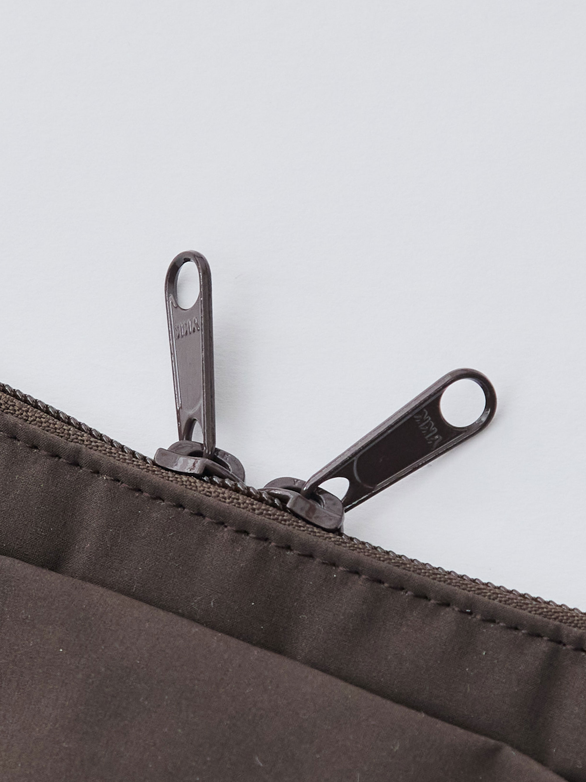 ファスナーはYKK製の大きめのものを採用し、開閉がスムーズ。引き手は穴の大きなシンプルなデザインで、お気に入りのチャームを付けてカスタマイズすることもできます。使い勝手とデザイン性を両立した、細部まで手を抜かない仕上がりです。