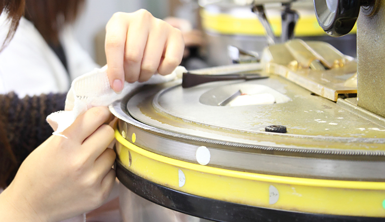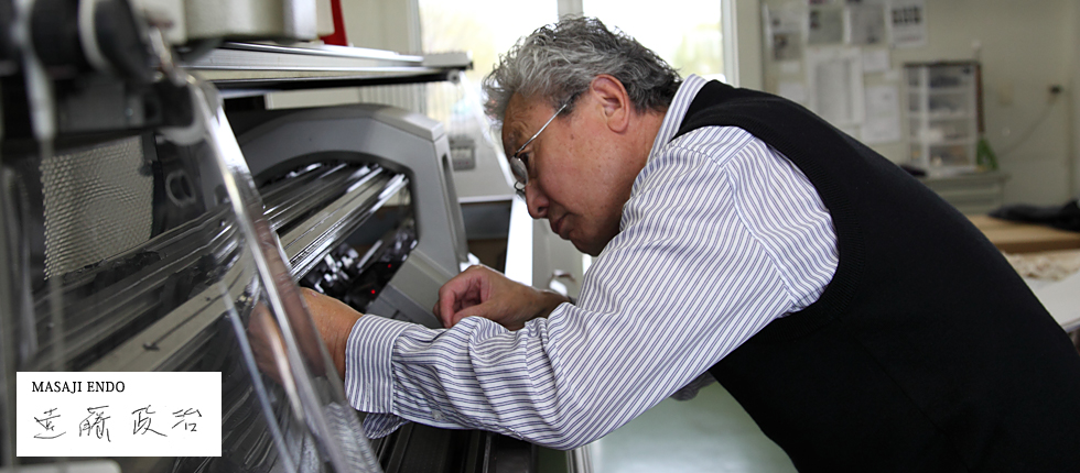 岩手県北上市の自社工場で働くのは平均年齢28歳の女性たち。50、60代が当たり前のこの業界において非常に若い年齢構成です。経験10年前後の彼女たちが行うのは、リンキングという編地と編地をつなぐ難易度の高い作業。伸び縮みする編み地同士を縫い合わせて伸び縮みする編み地のようにする縫製方法で、双方の細かな編み目を一目一目つなぎ合わせていくために高い熟練の技が必要です。