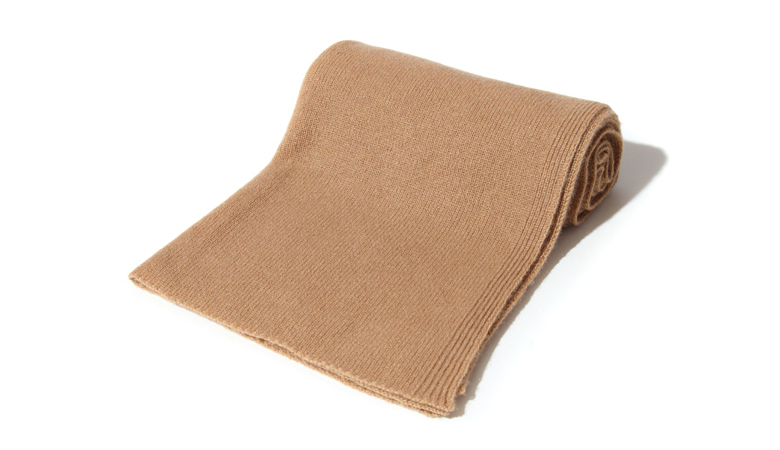 天然素材で繊細なカシミヤは、着用したり、洗濯をしたりするうちに、どうしても劣化してしまうことは否めません。そのため、長く愛用していただくために編み地を詰め気味に編み込む必要があります。しかし、今回のマフラーは通常の製品とは逆手の方法で、度目(編む際の度合い)を甘くするという、よりゲージを下げてスカスカに編むことによってとても柔らかい風合いを出しました。その道50年のベテランだからこそできた逆転の発想。この絶妙なバランス調整から生まれたマフラーは、羽毛のような軽さをふんわり感から「天使のマフラー」と名付けました。その名の通り、肌に直接着ると想像以上の柔らかを実感していただけるはずです。