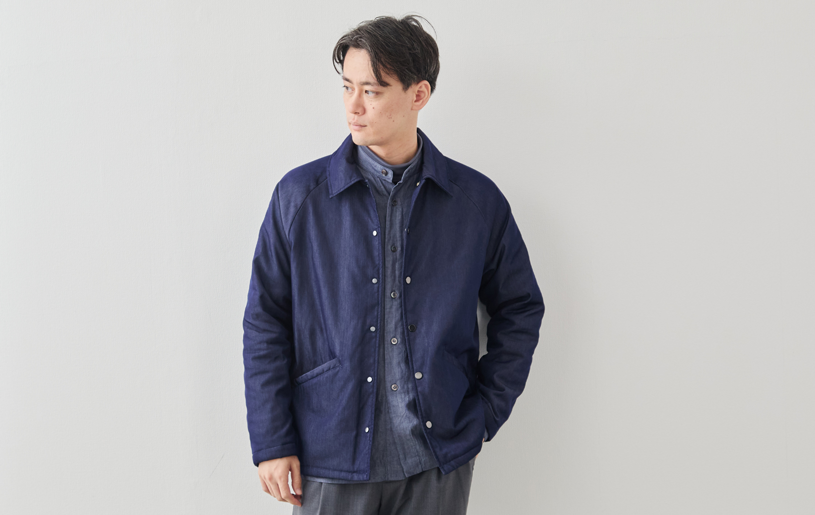 光電子®×ナイロンデニム 中綿コーチジャケット/インディゴブルー