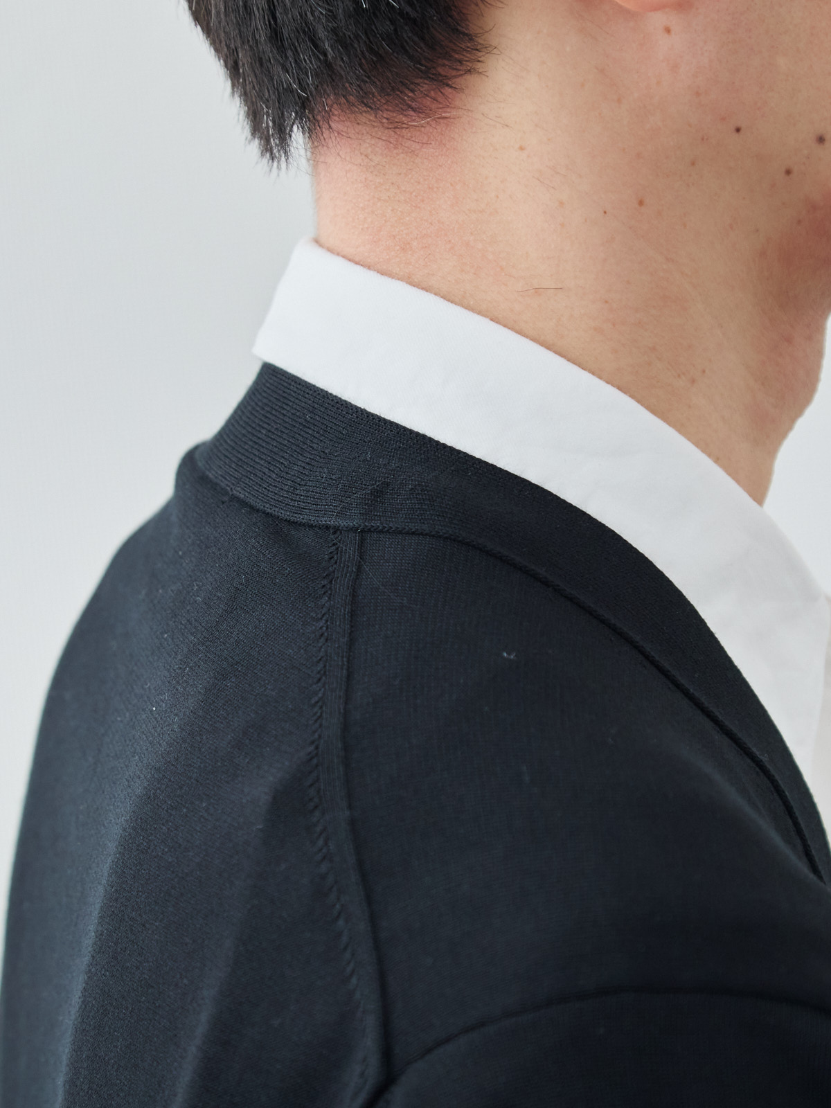 Jacket Fit 洗えるモックネックニット/高密度リュクスウール/ブラック