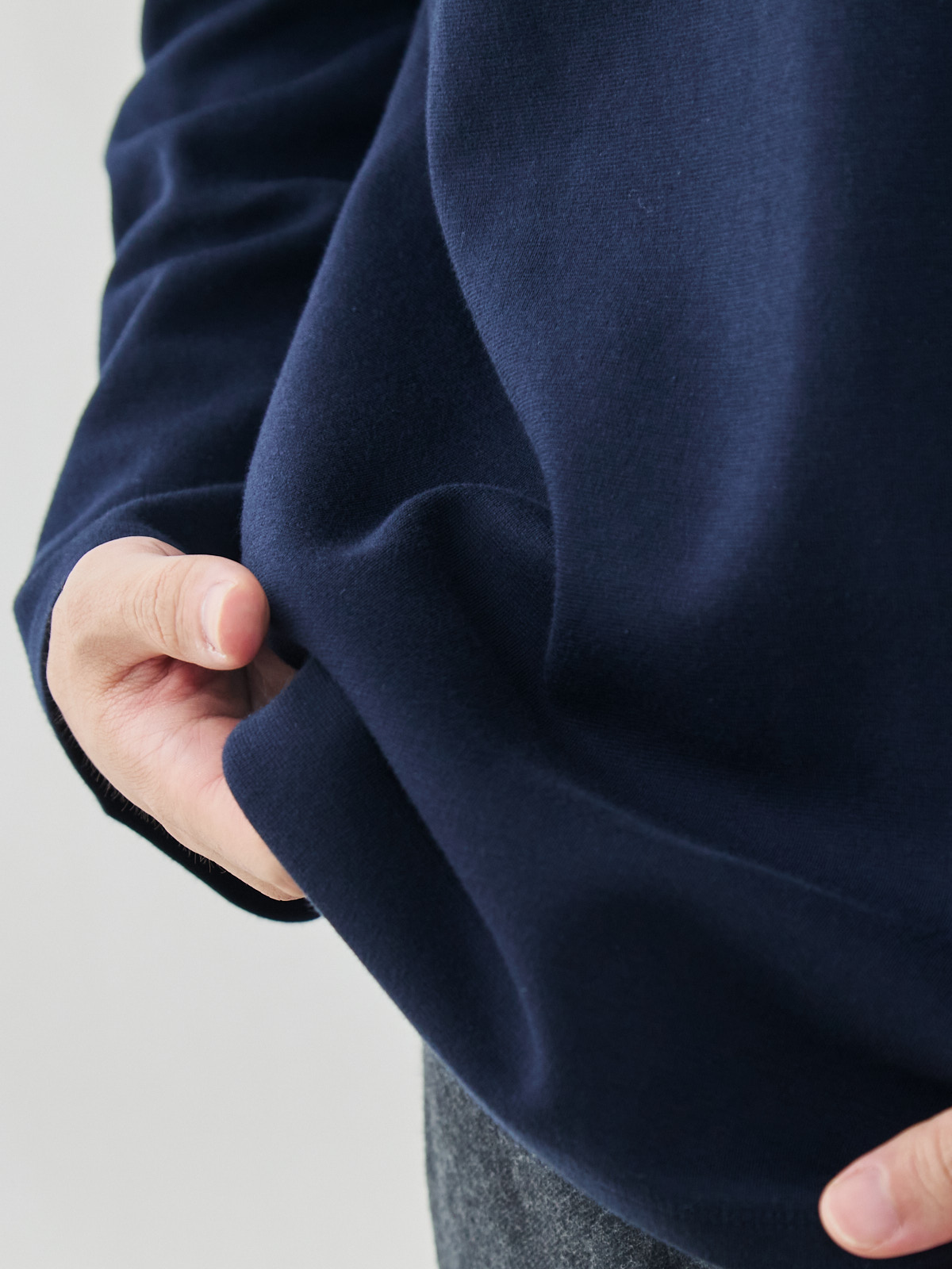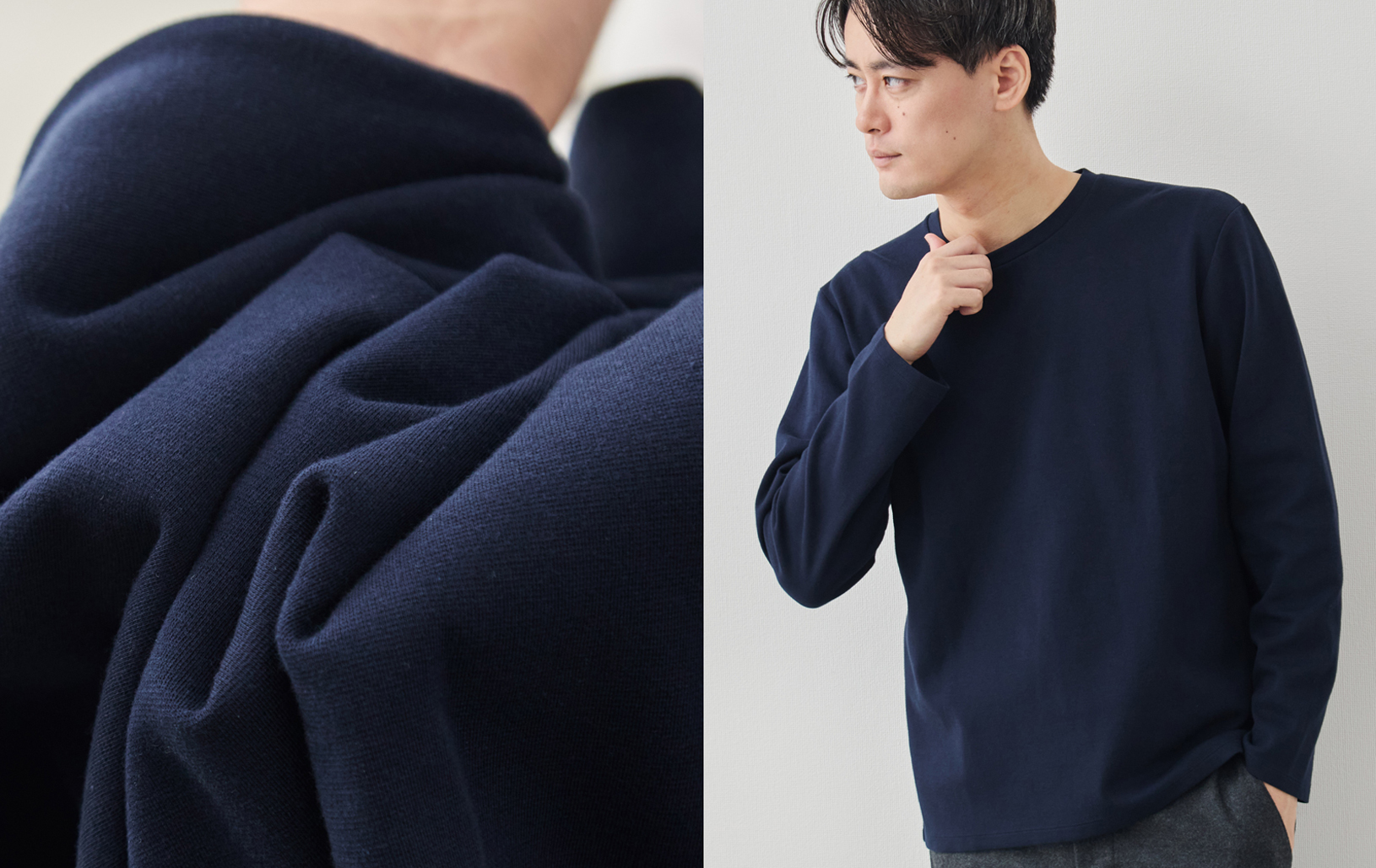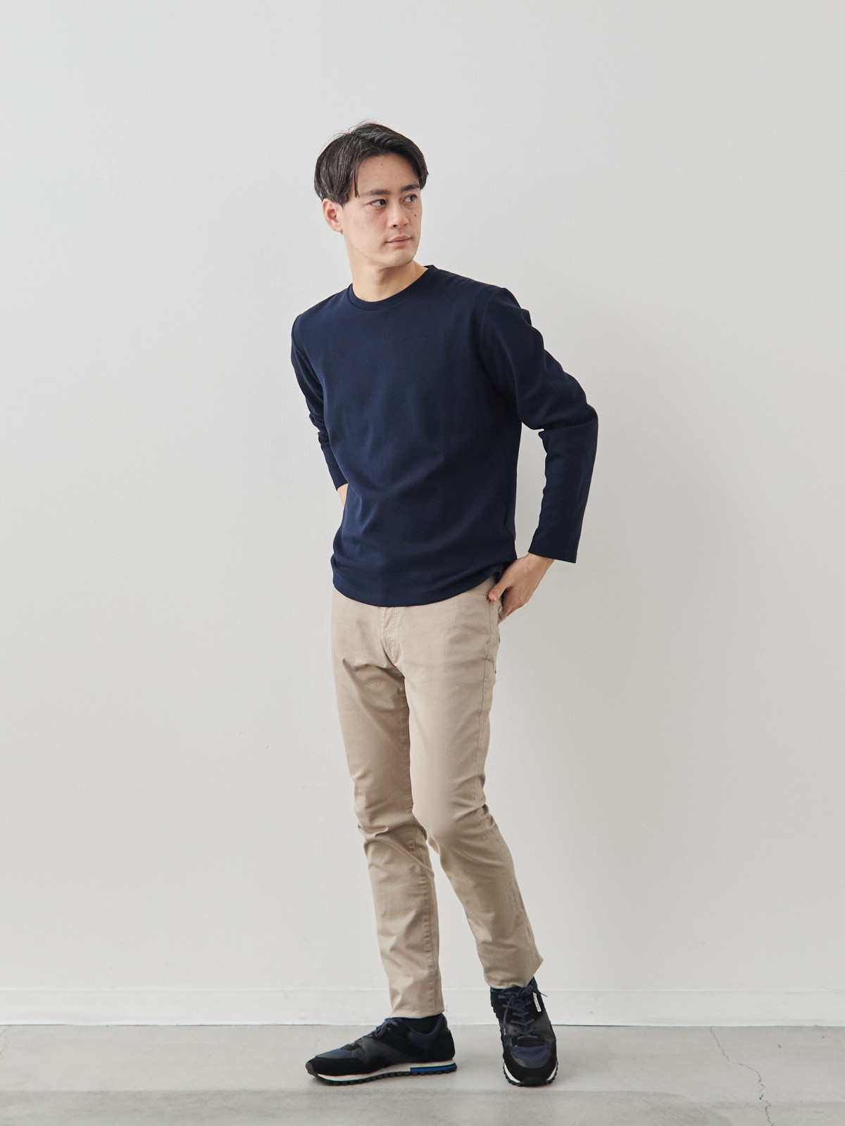 スペインピマ綿 ウルトラスムース 薄手スウェットロンT/ネイビー