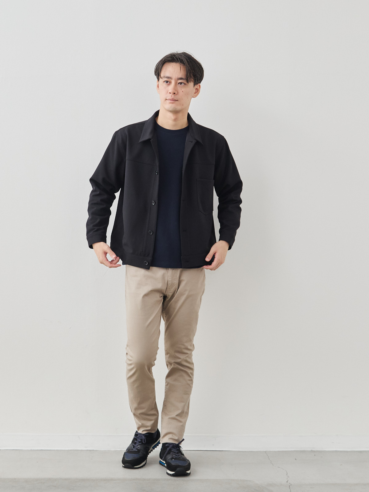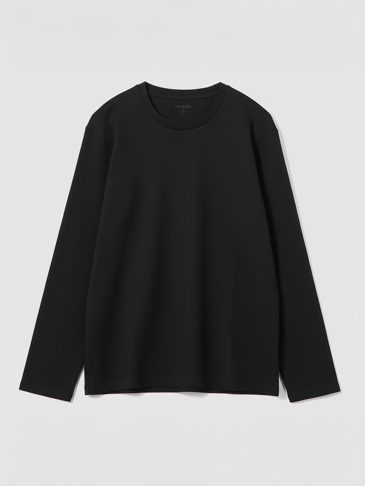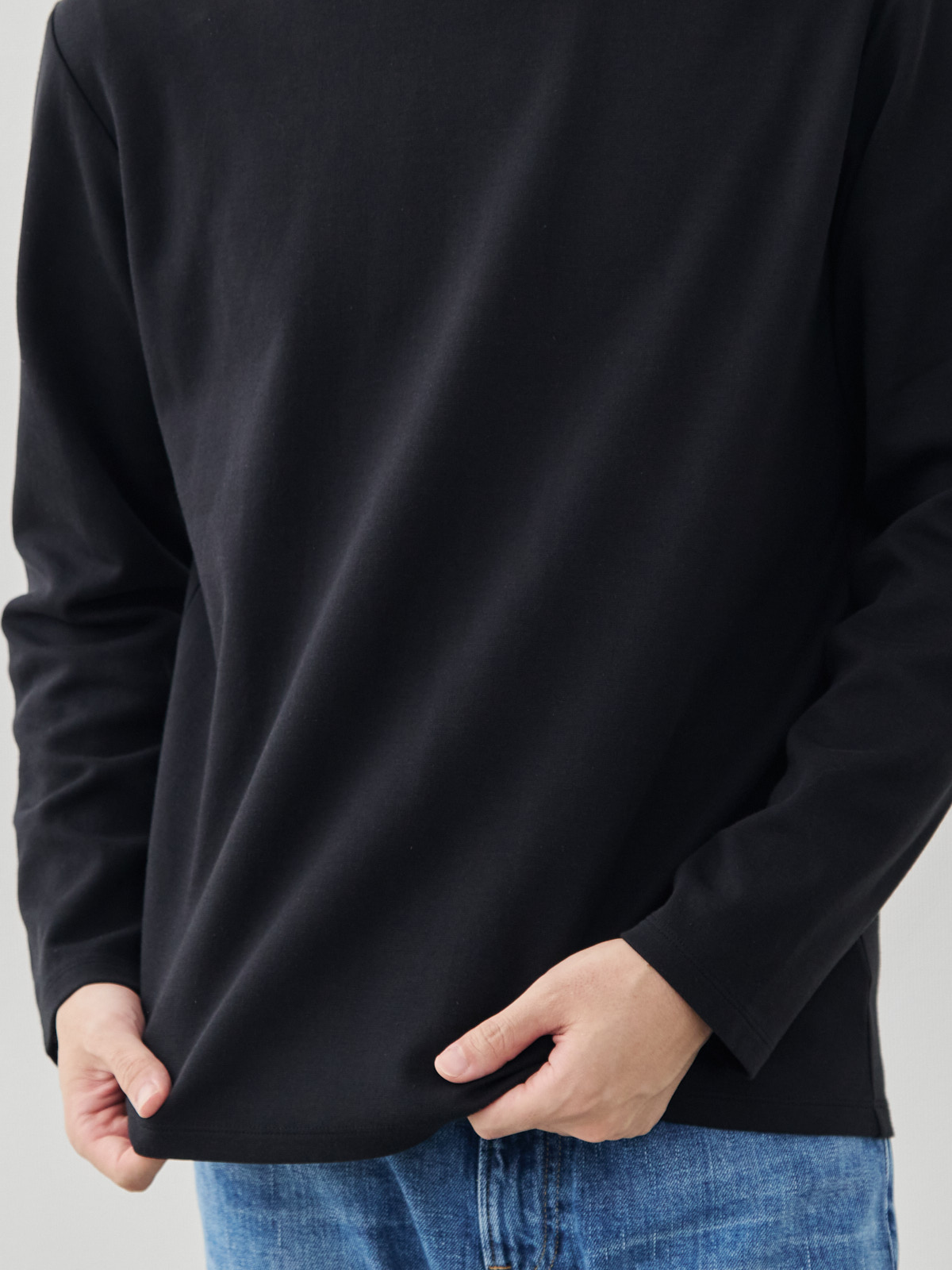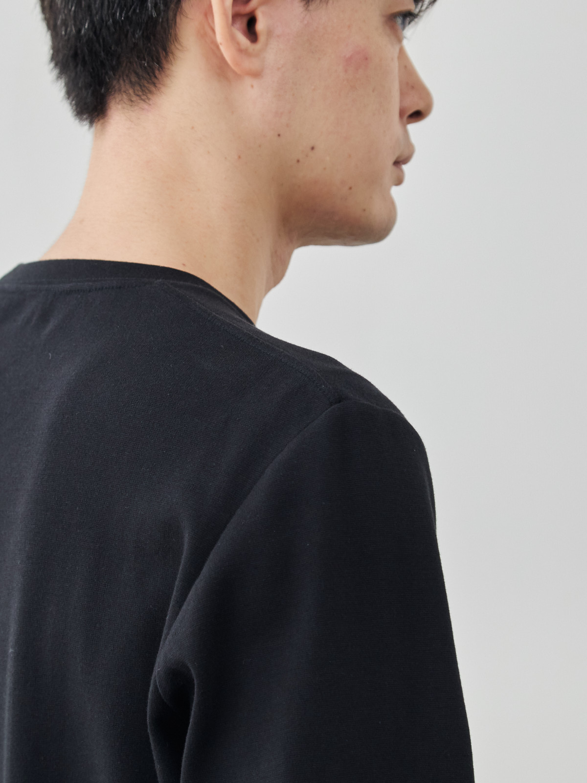 上質コットン100%のドレスTシャツ/Jacket Fit/クルーネック長袖/ブラック
