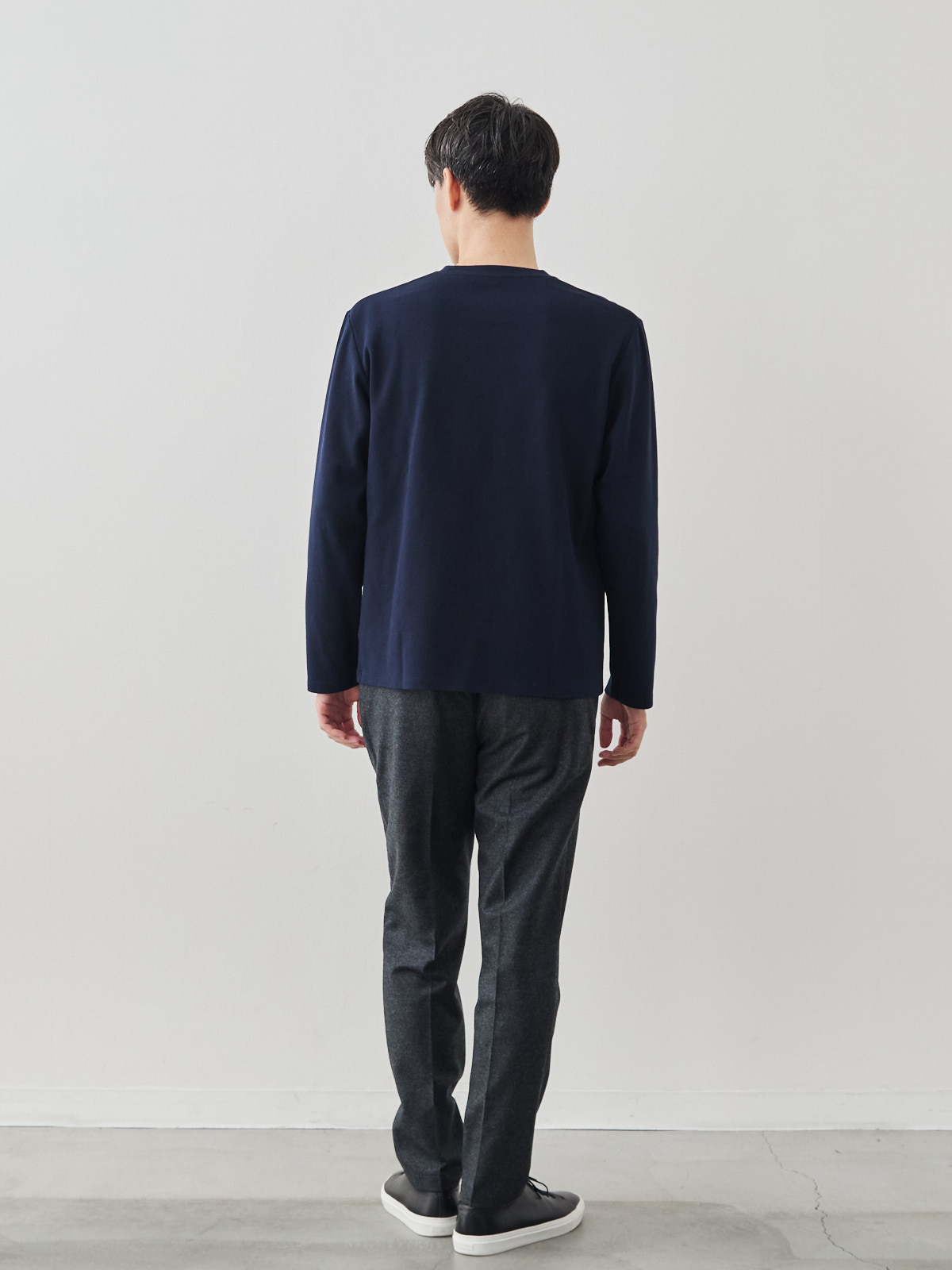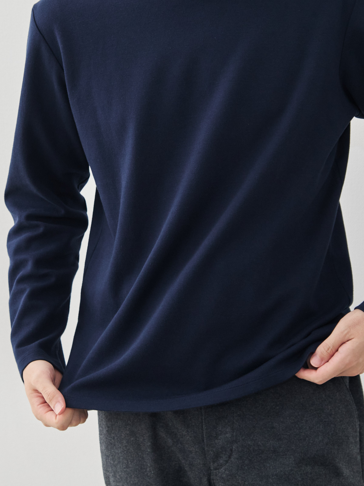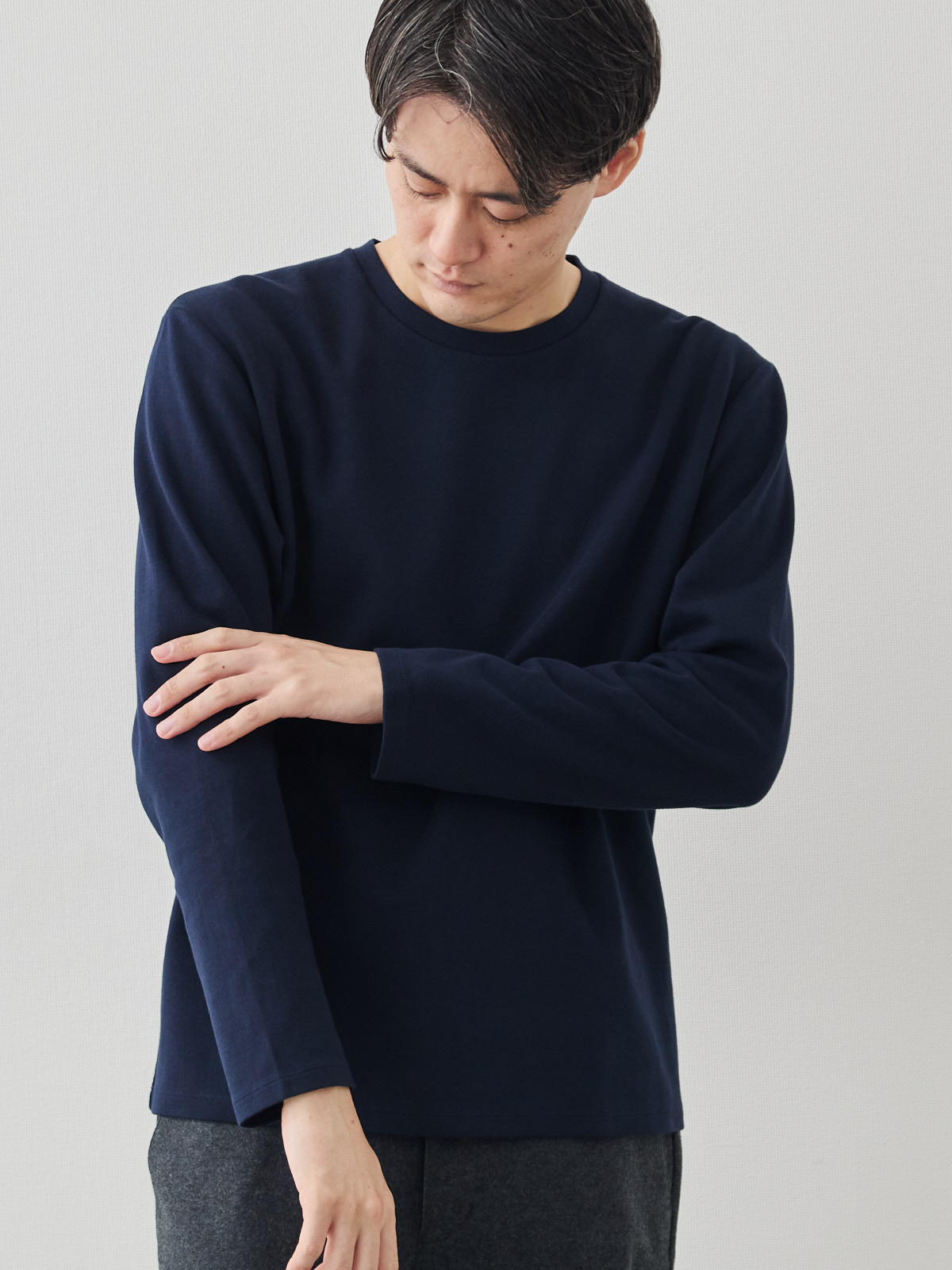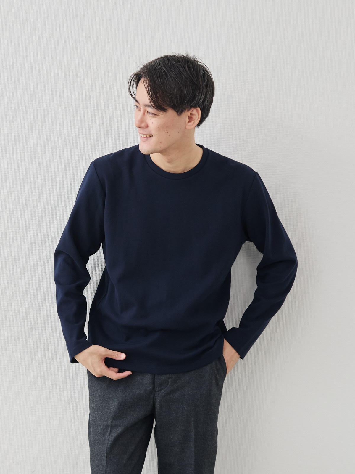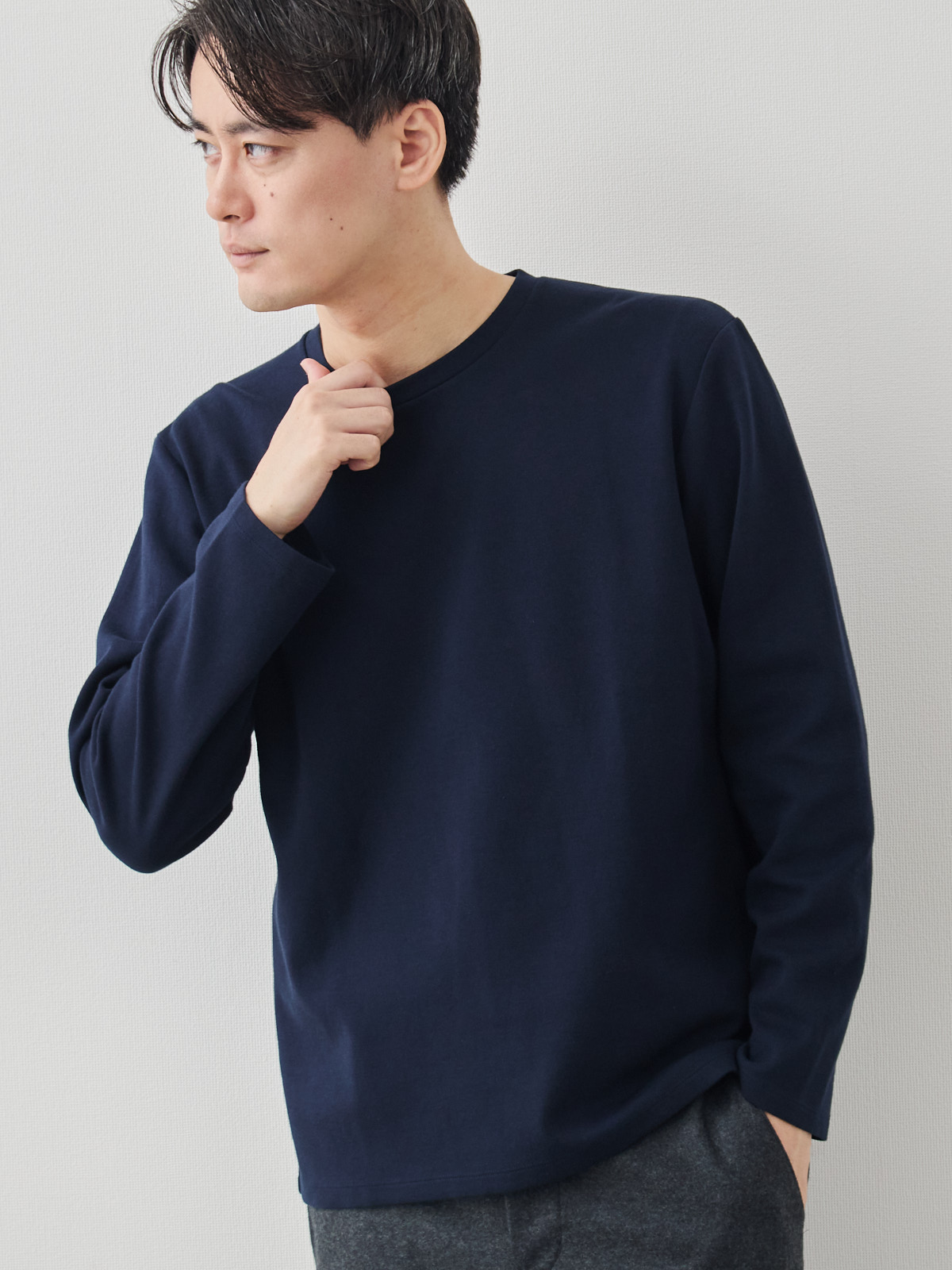 上質コットン100%のドレスTシャツ/Jacket Fit/クルーネック長袖/ネイビー