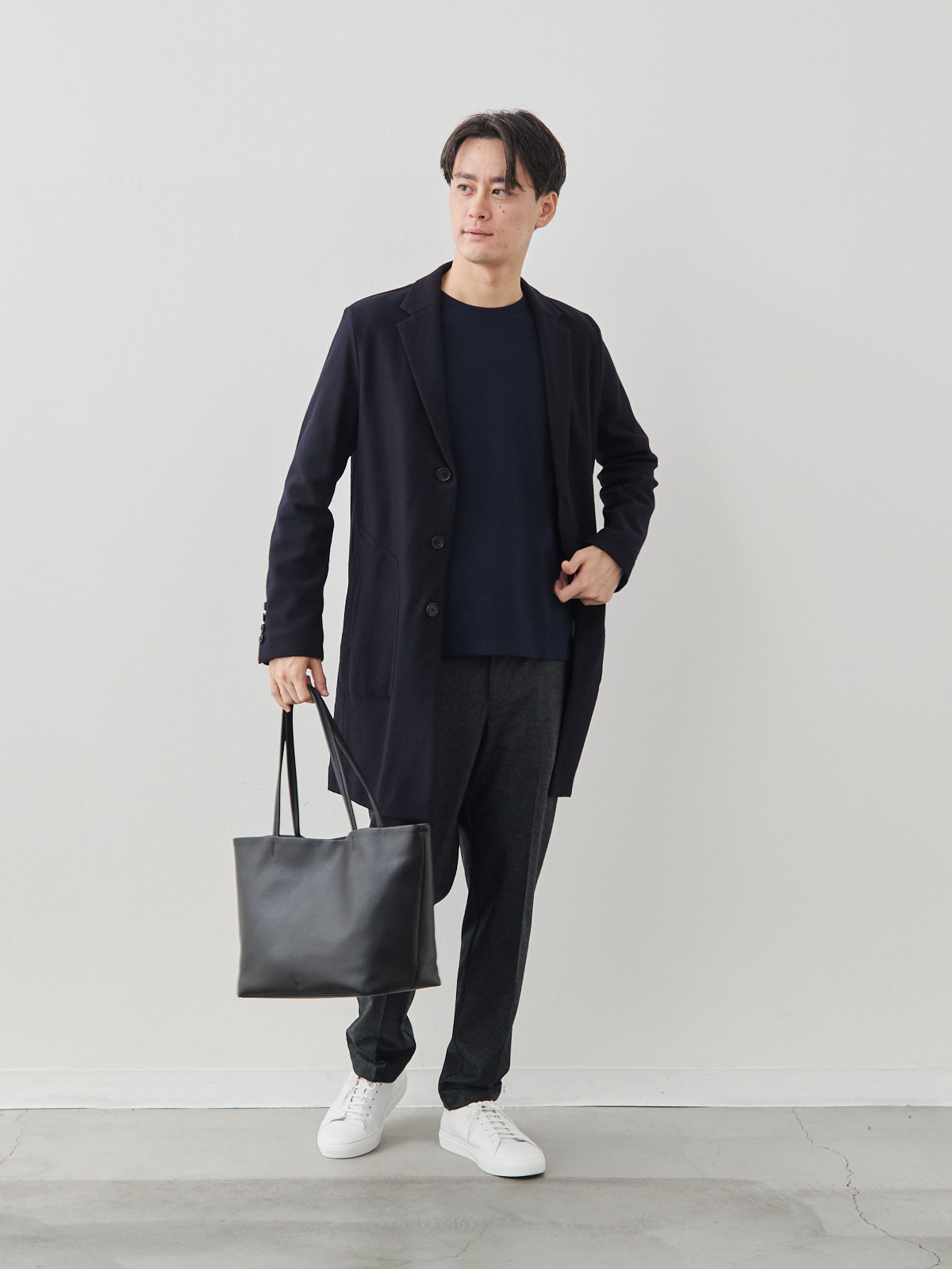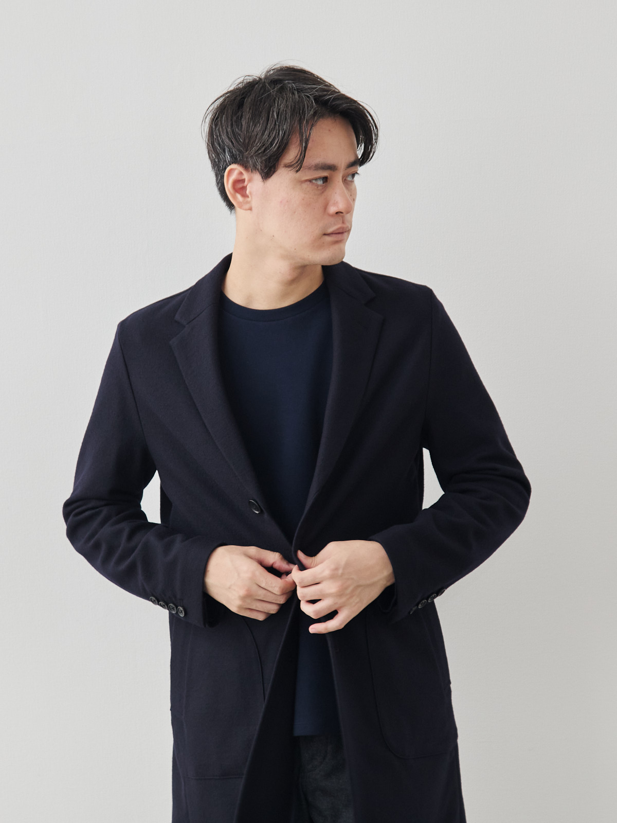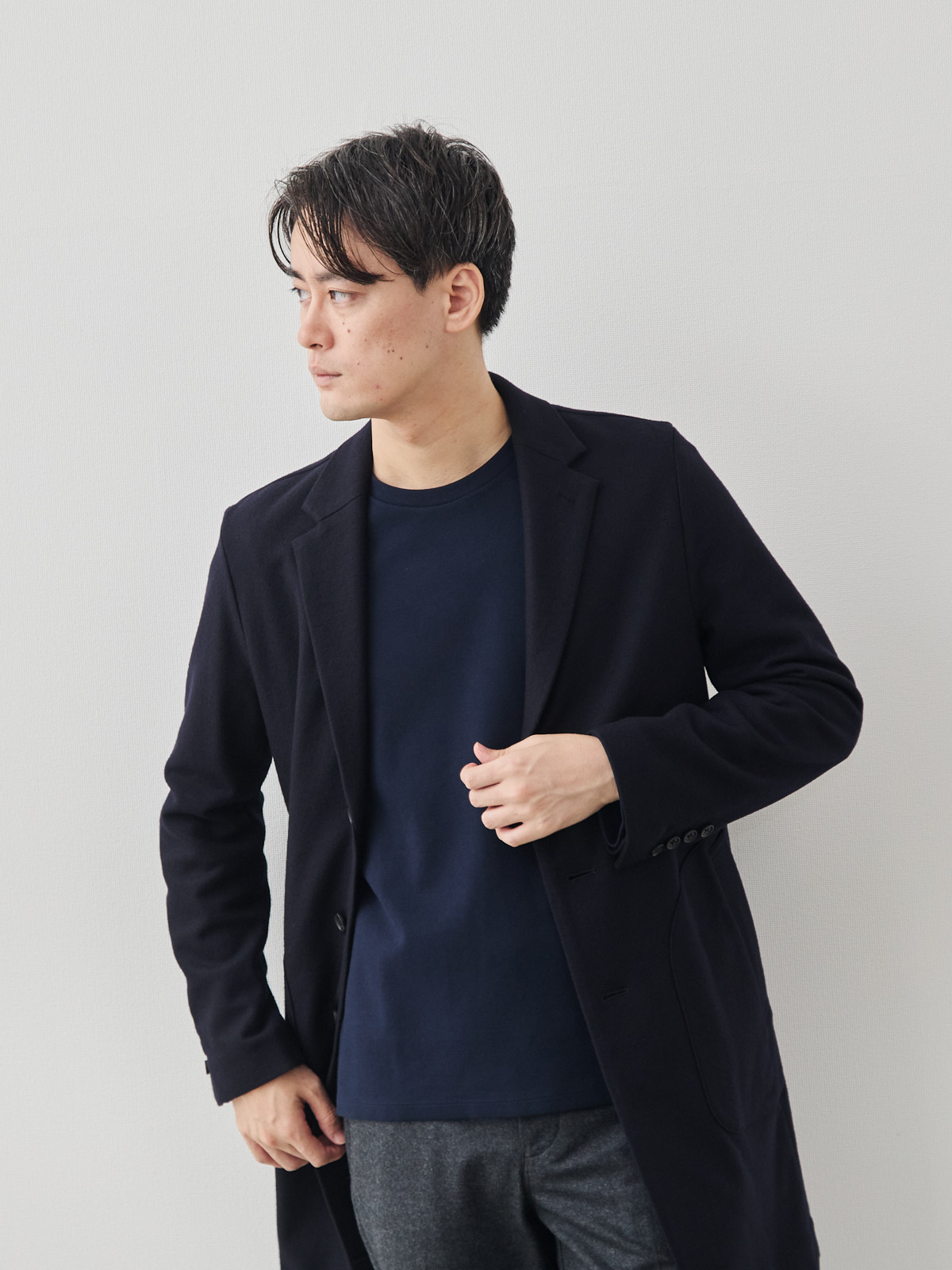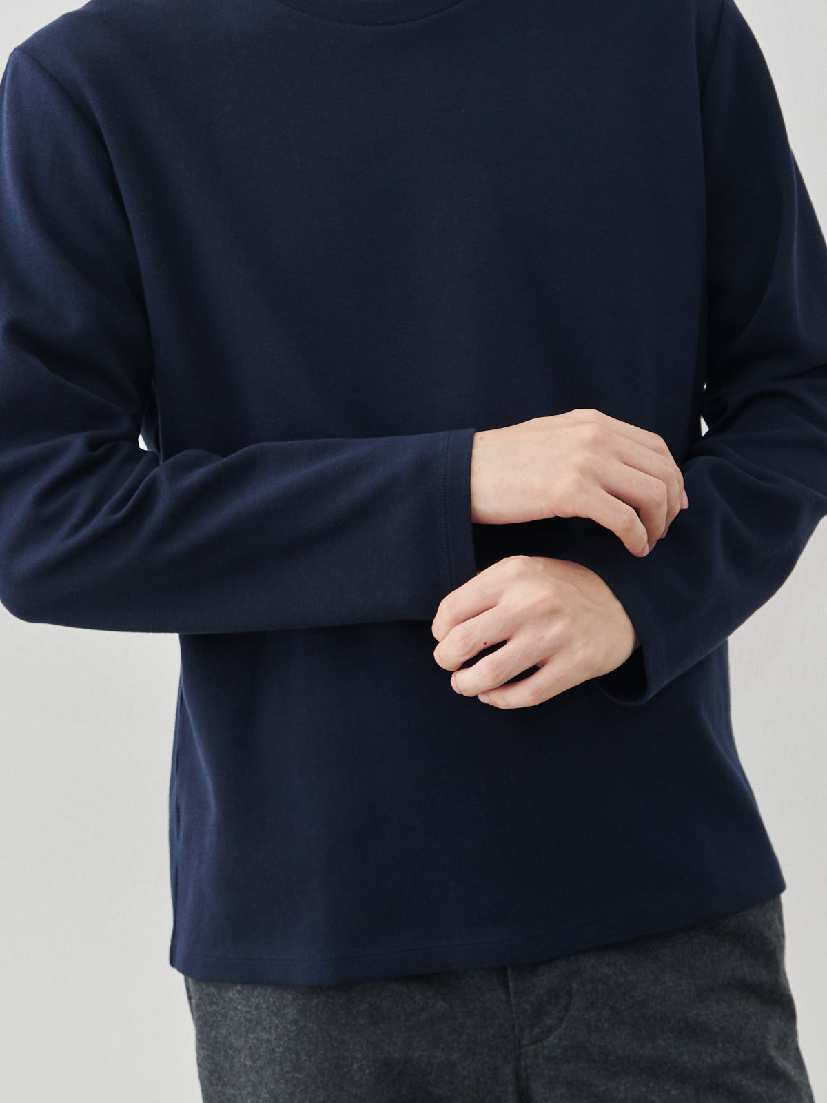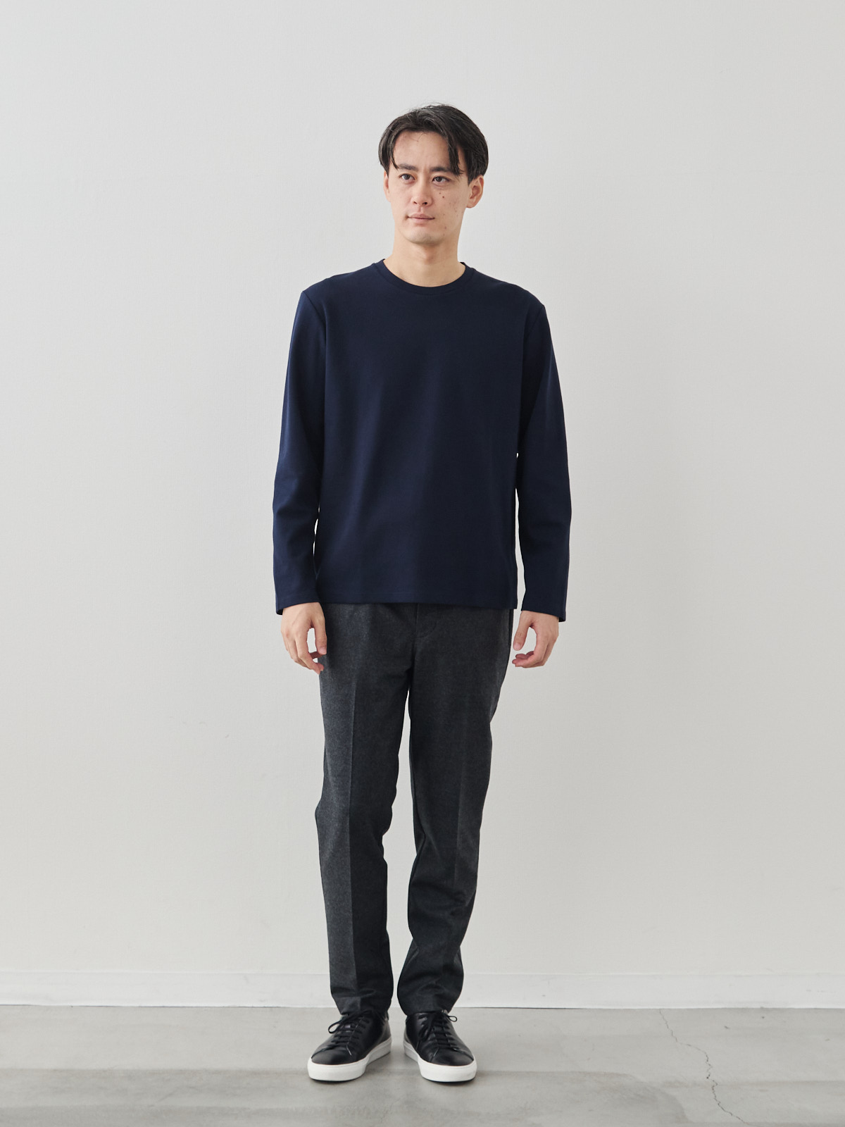 上質コットン100%のドレスTシャツ/Jacket Fit/クルーネック長袖/ネイビー