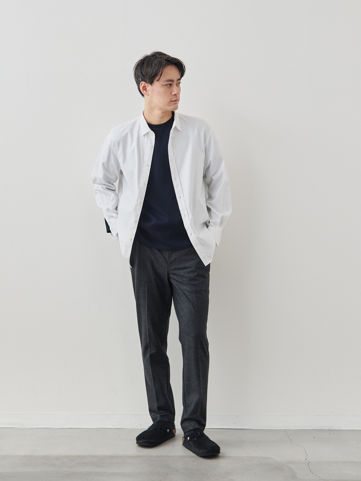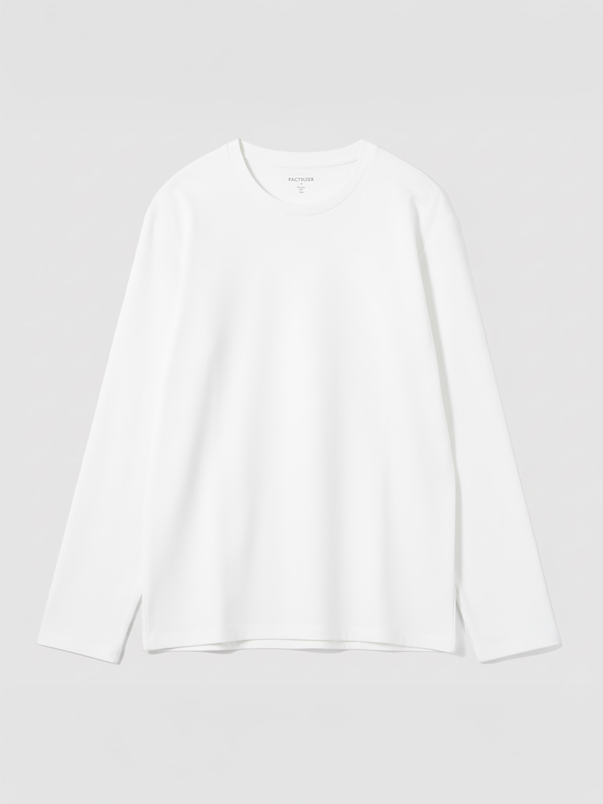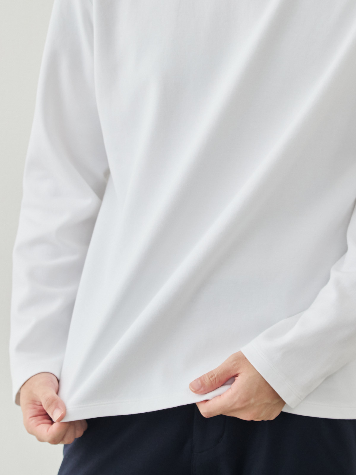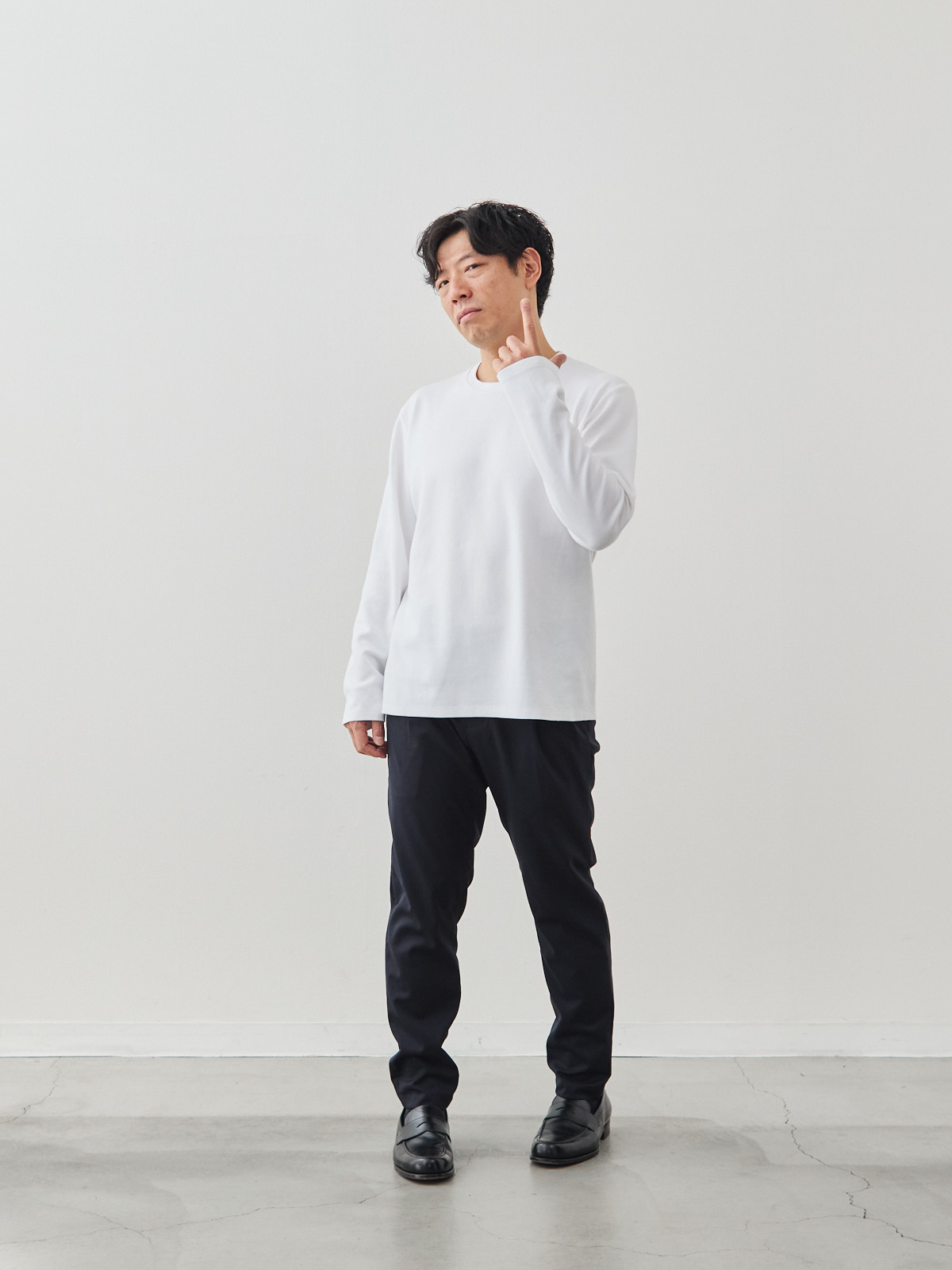 上質コットン100%のドレスTシャツ/Jacket Fit/クルーネック長袖/ホワイト