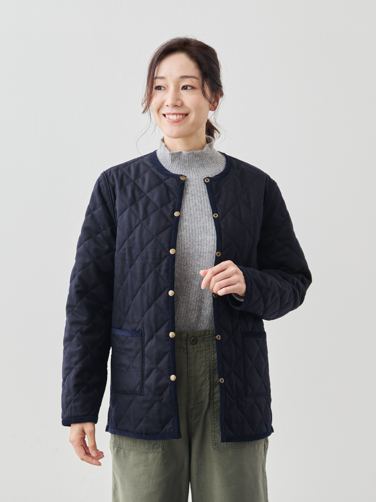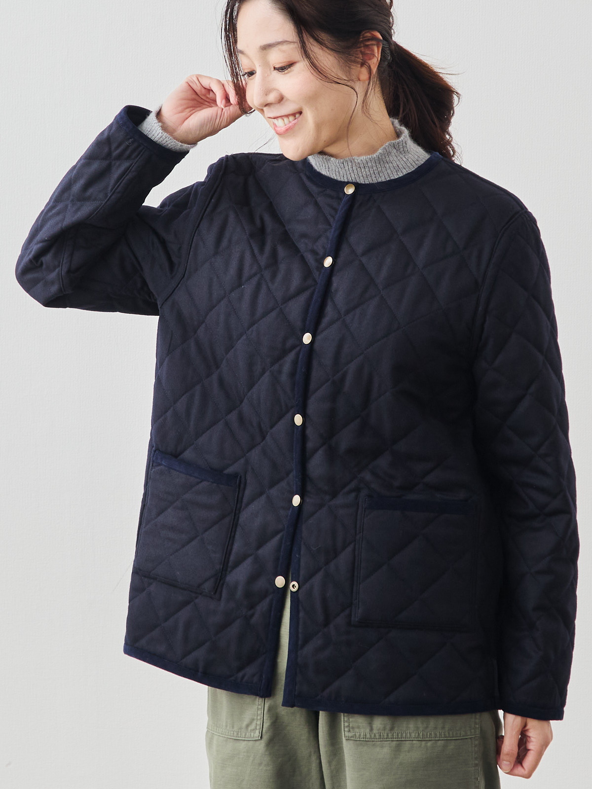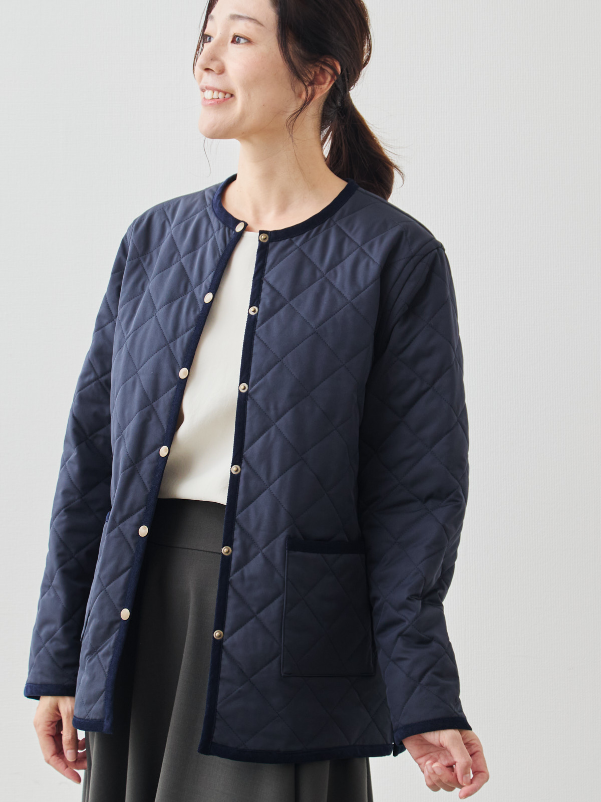 リバーシブルキルティングコート/ネイビー