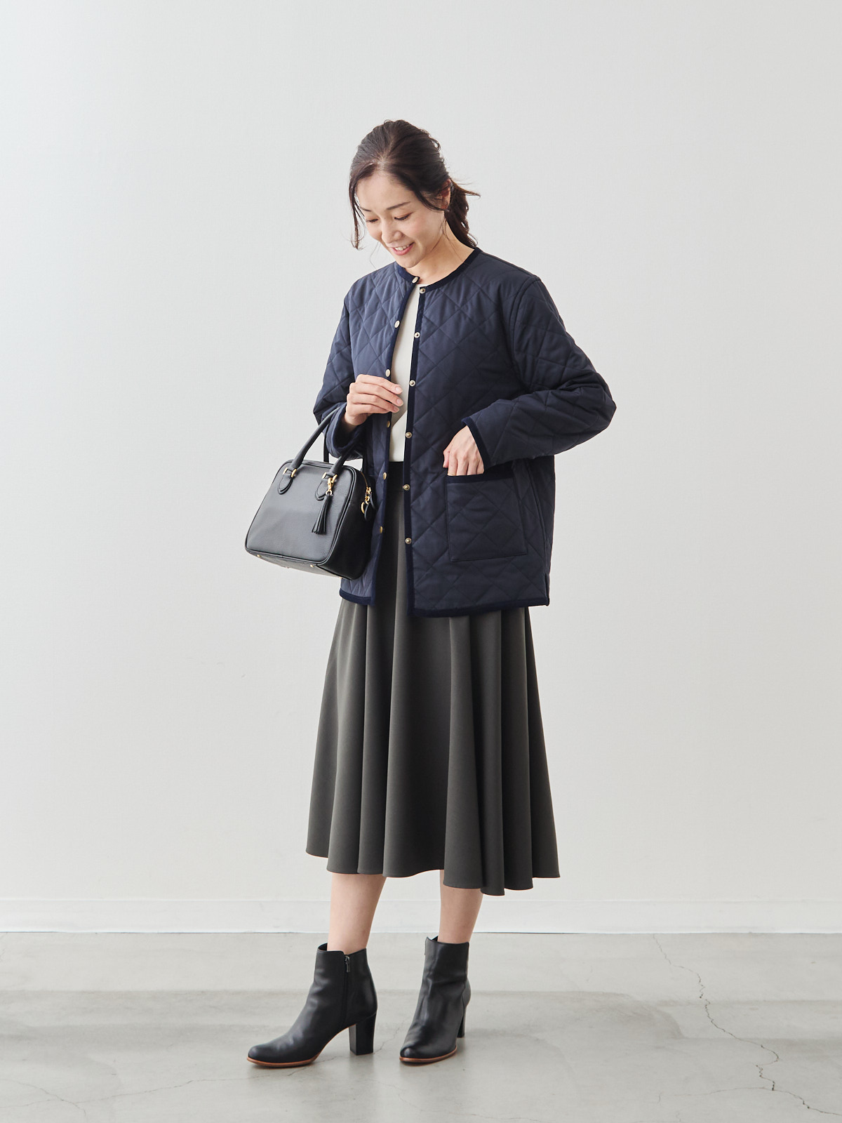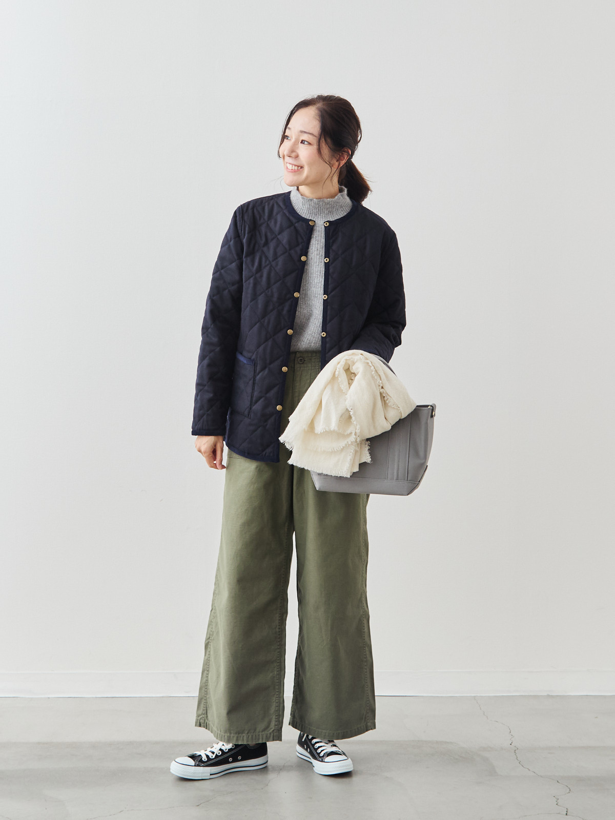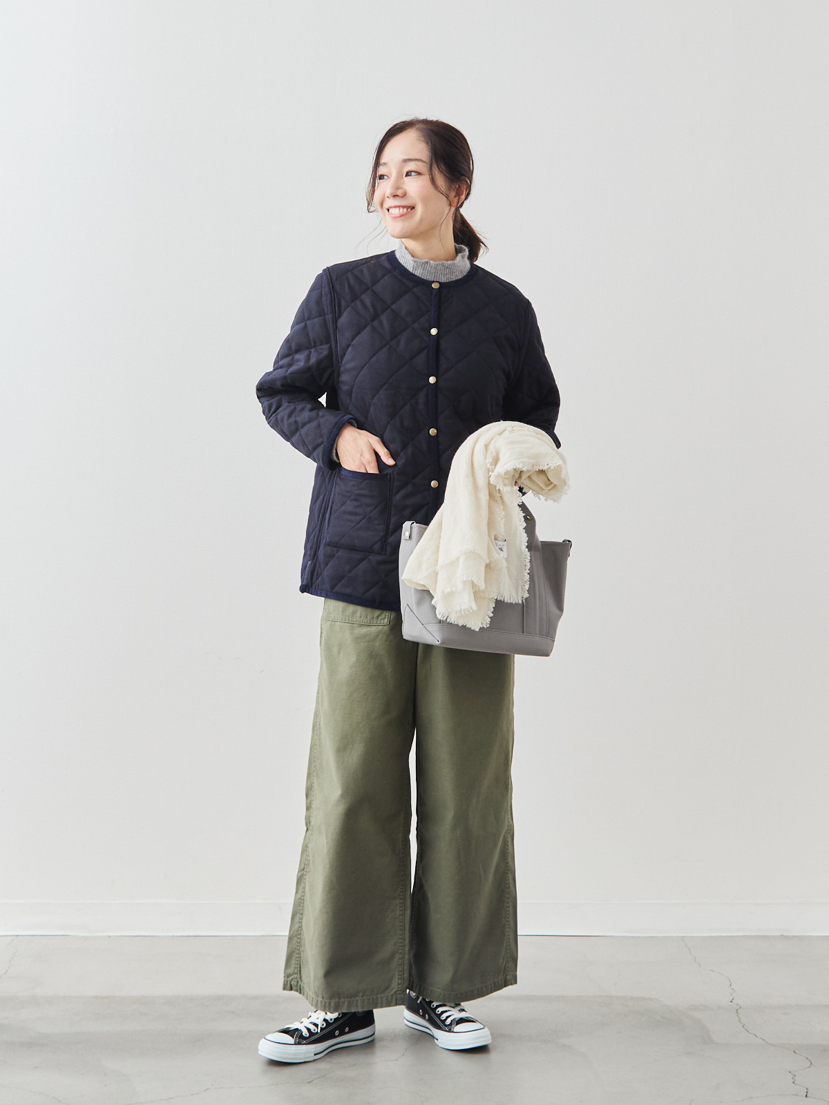 リバーシブルキルティングコート/ネイビー