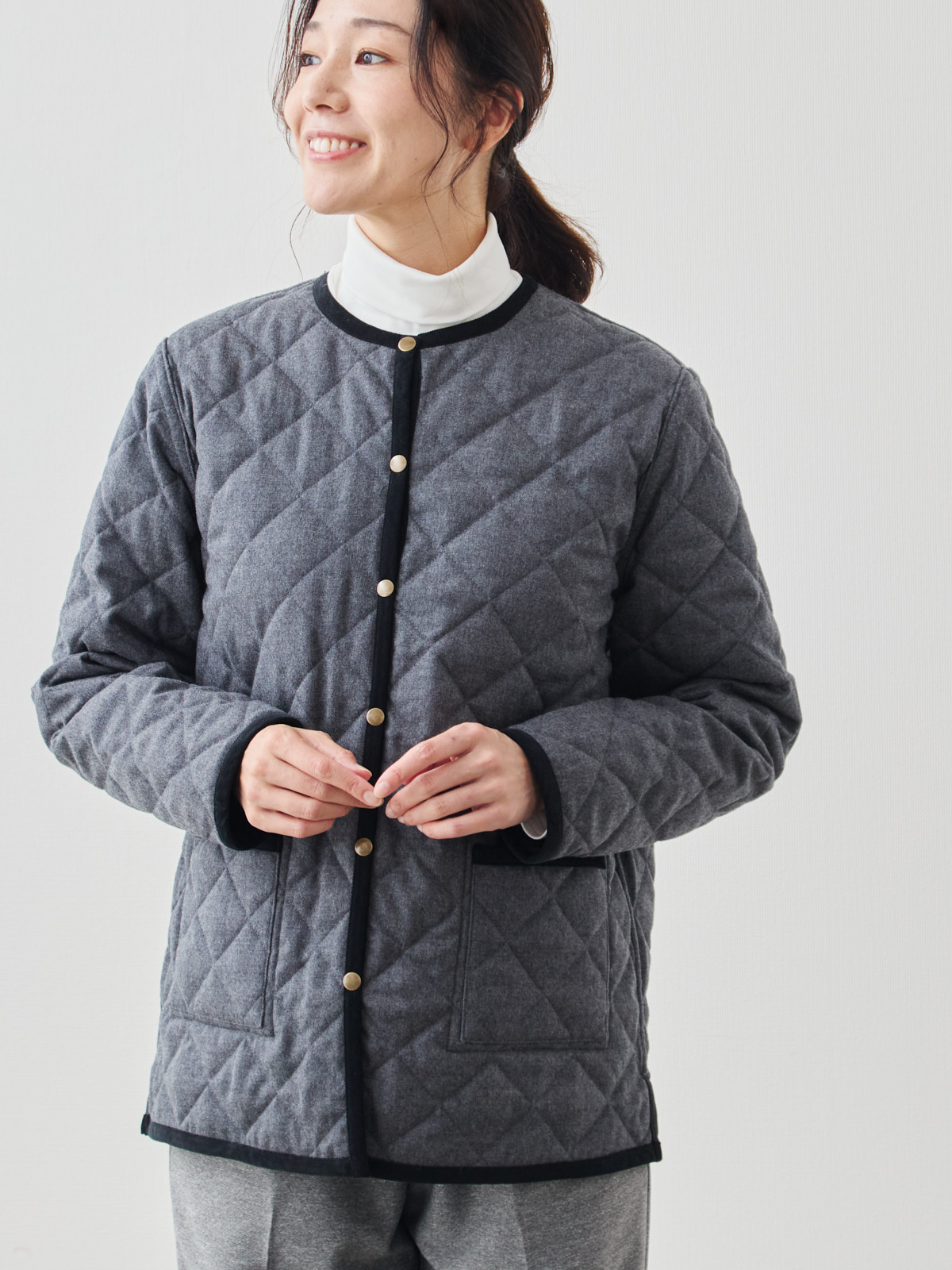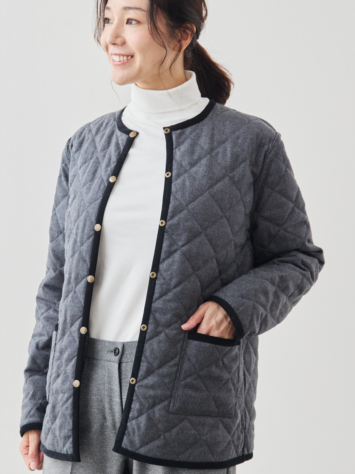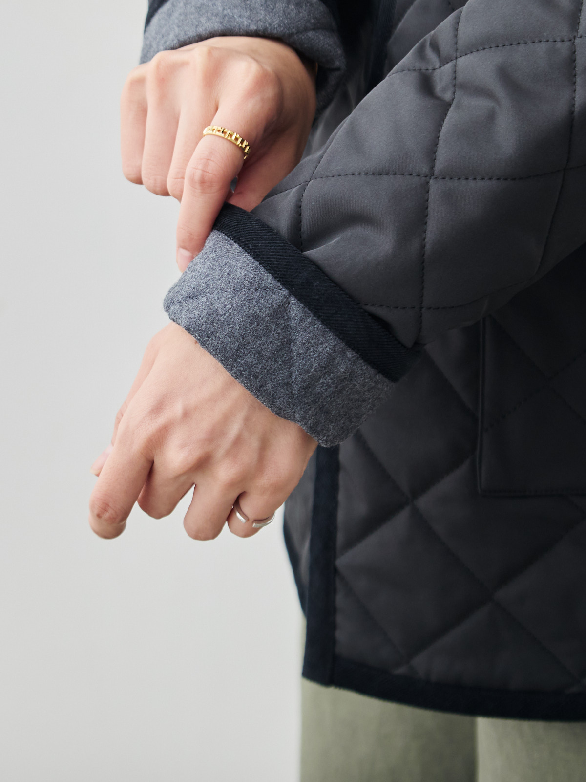 リバーシブルキルティングコート/ブラック