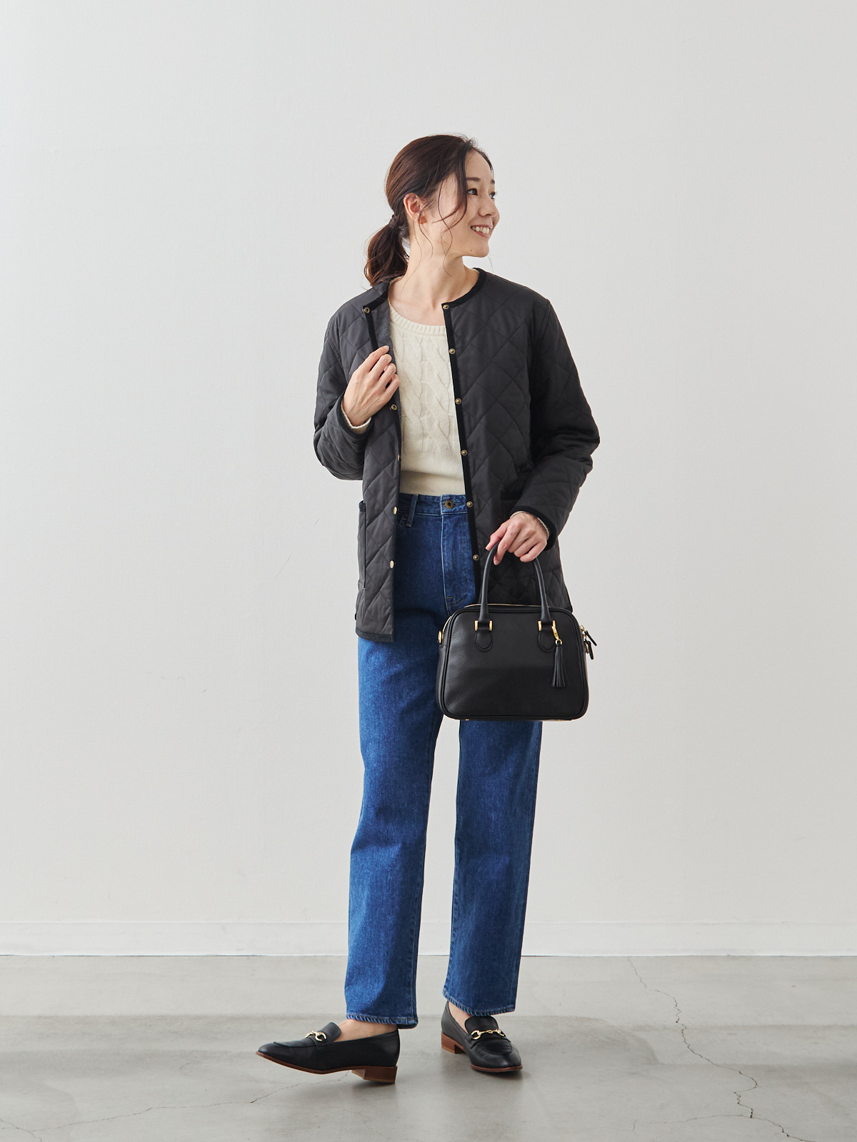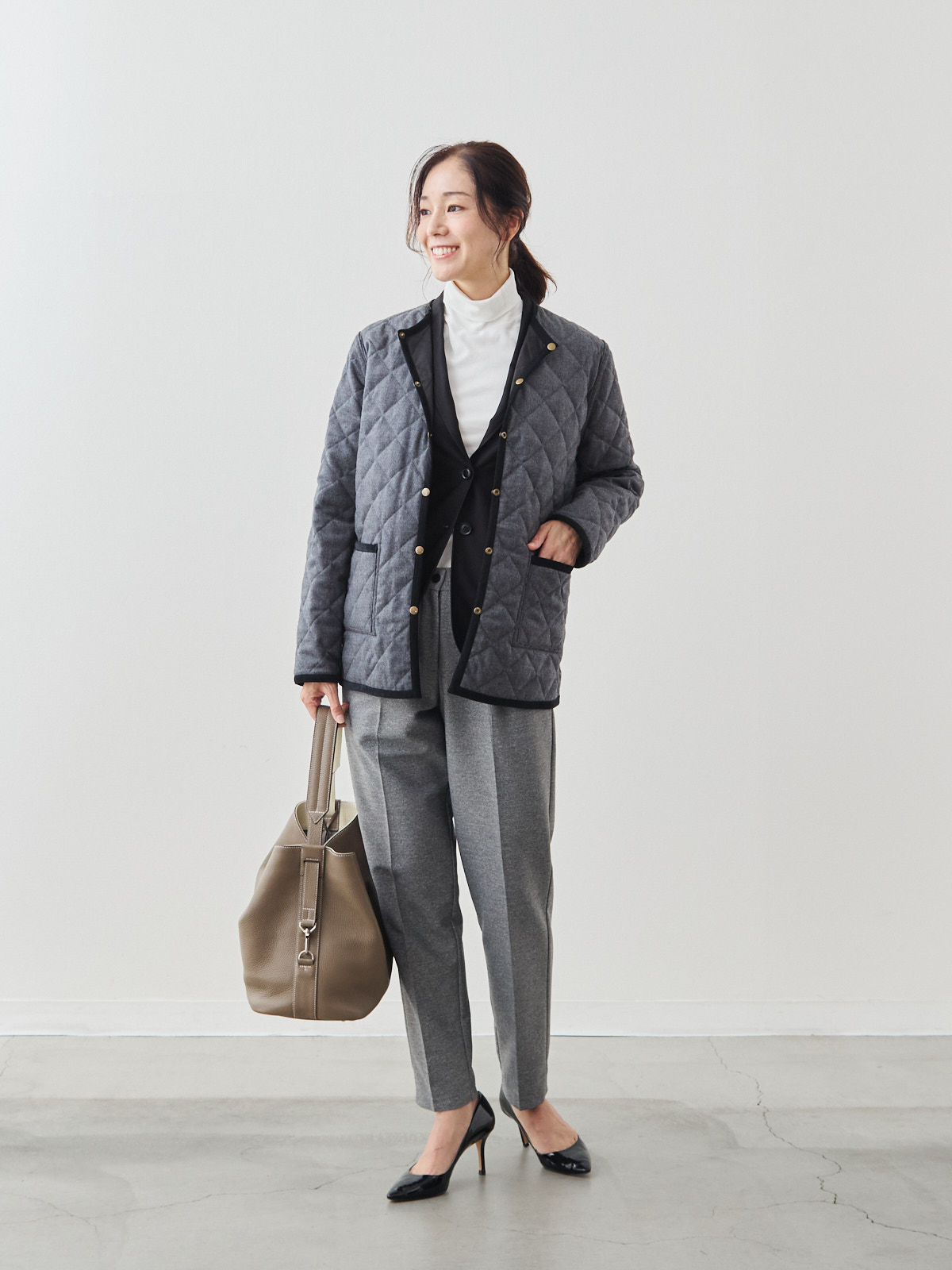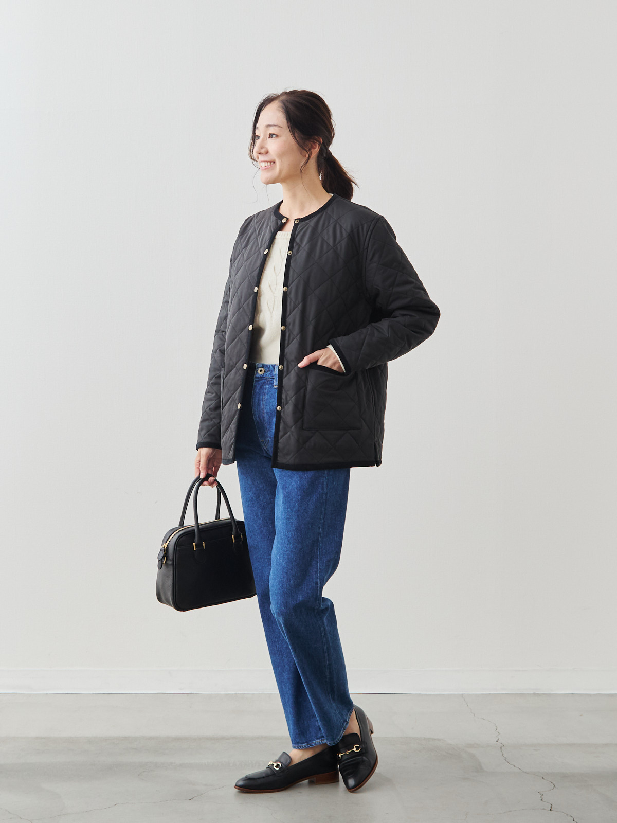 リバーシブルキルティングコート/ブラック