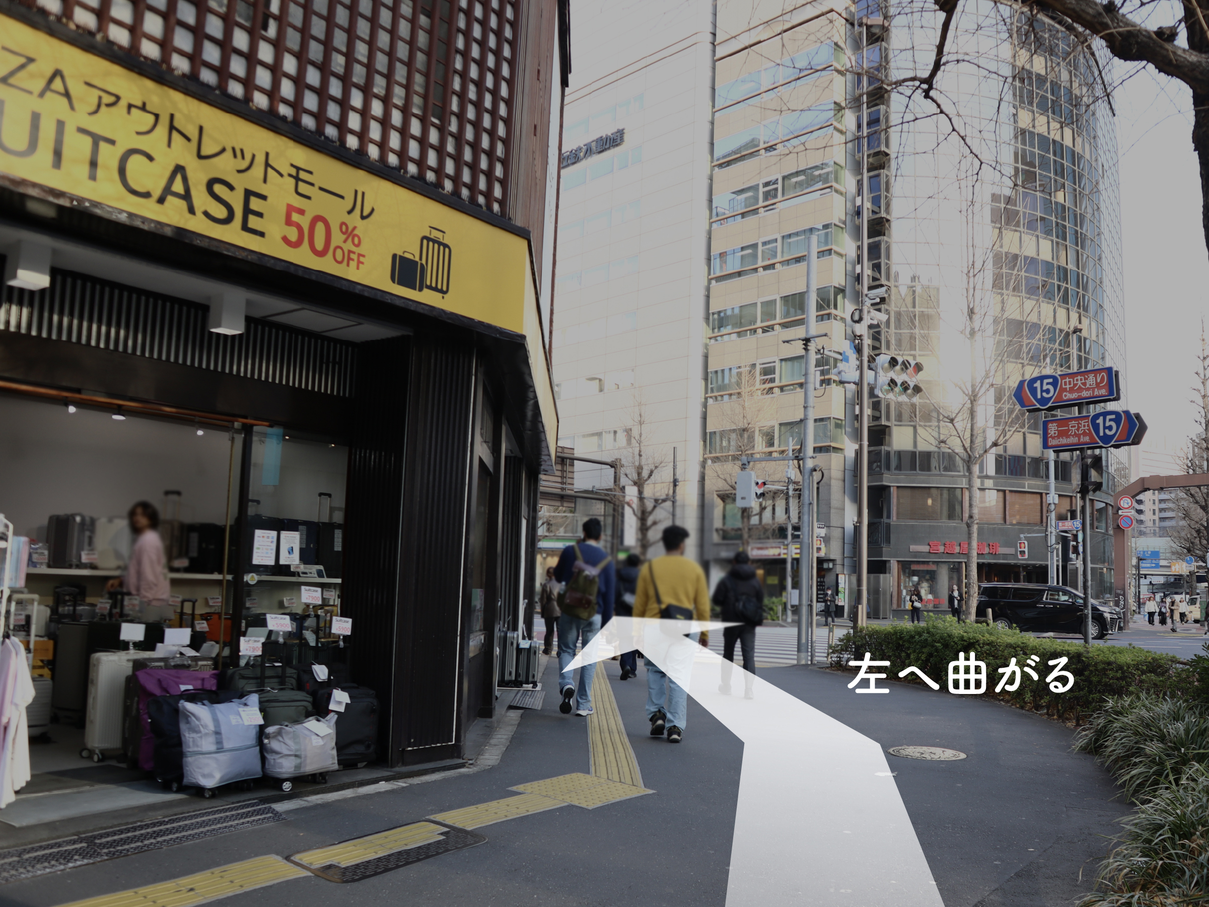 「NISSAN(ニッサン)」を左に曲がり、銀座中央通りをまっすぐ進みます。